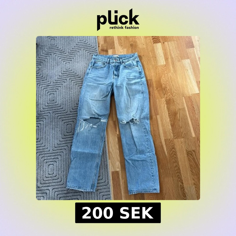 Ljusblå jeans med raka ben från Gina tricot perfect jeans. Klassisk femficksmodell med slitna detaljer och hål på båda knäna för en avslappnad look. Hög midja och tillverkade i bomullsdenim. Perfekta för dig som gillar en trendig och bekväm stil.