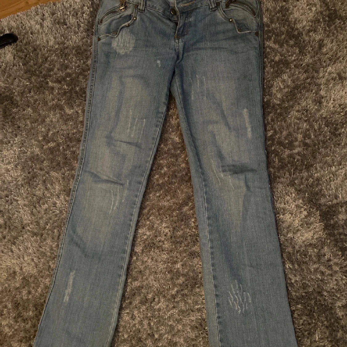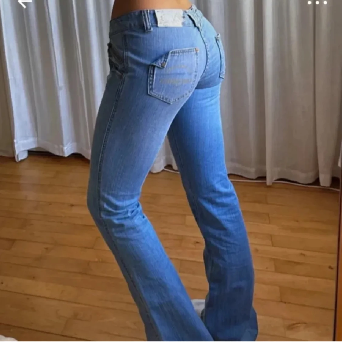 Säljer ett par snygga blå bootcut jeans i bra skick. De är lågmidjade och har en klassisk femficksdesign. Perfekta för både vardag och fest! 💙midjemått:40 innerbensmått:82