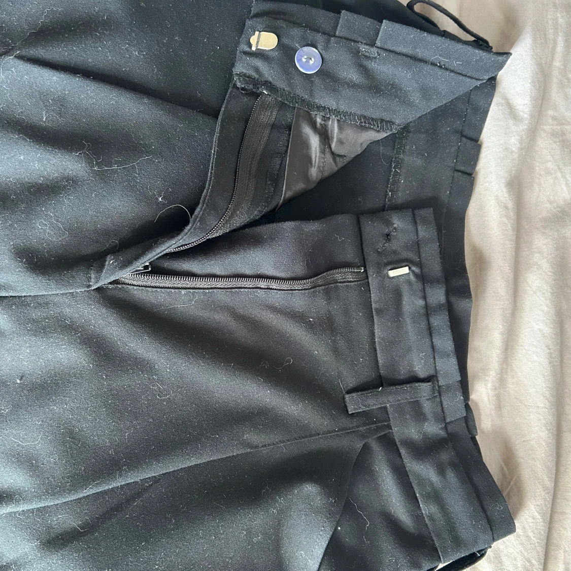 Säljer ett par svarta kostymbyxor från C i storlek 38. Byxorna har klassisk passform med dragkedja och knapp framtill samt diskreta bakfickor. Perfekta för en stilren look.