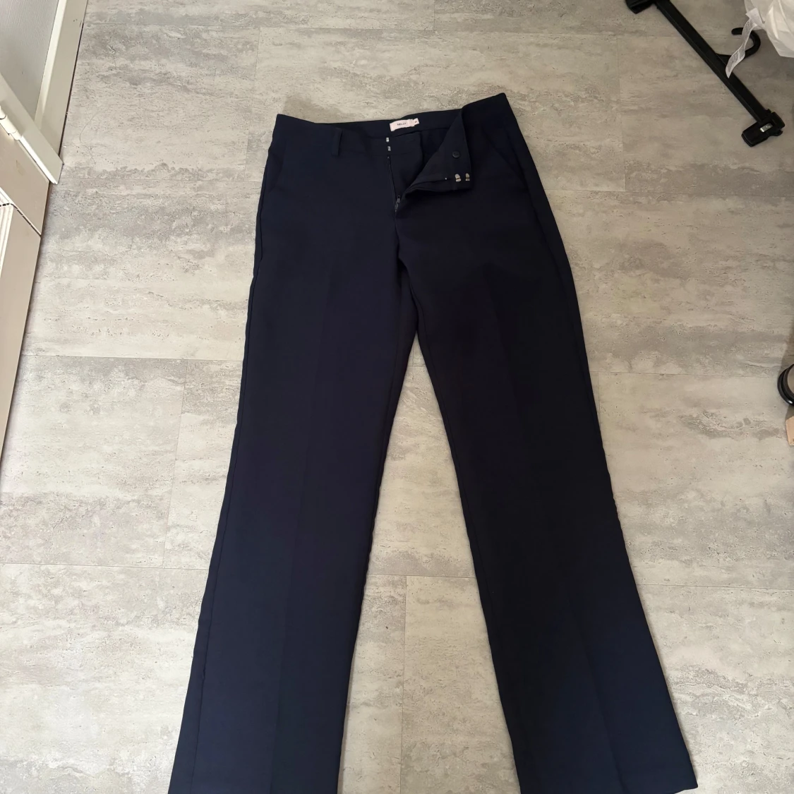 Mörkblå kostymbyxor med raka ben