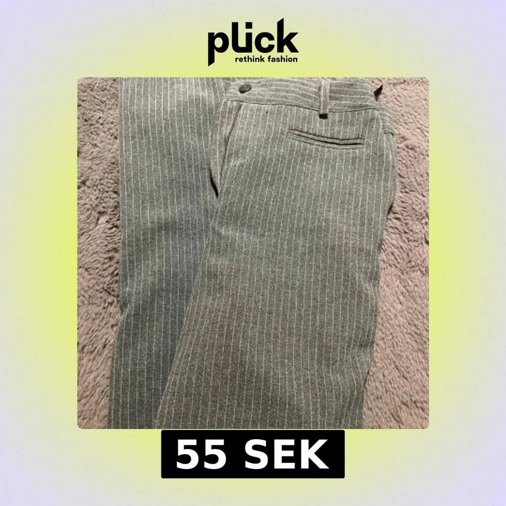 Snygga grå kostymbyxor med tunna vita ränder från Fashion. Klassisk rak passform med hällor för bälte och diskreta bakfickor. Perfekta för en stilren look och passar till skjorta eller t-shirt. Materialet känns mjukt och bekvämt. Storlek 38