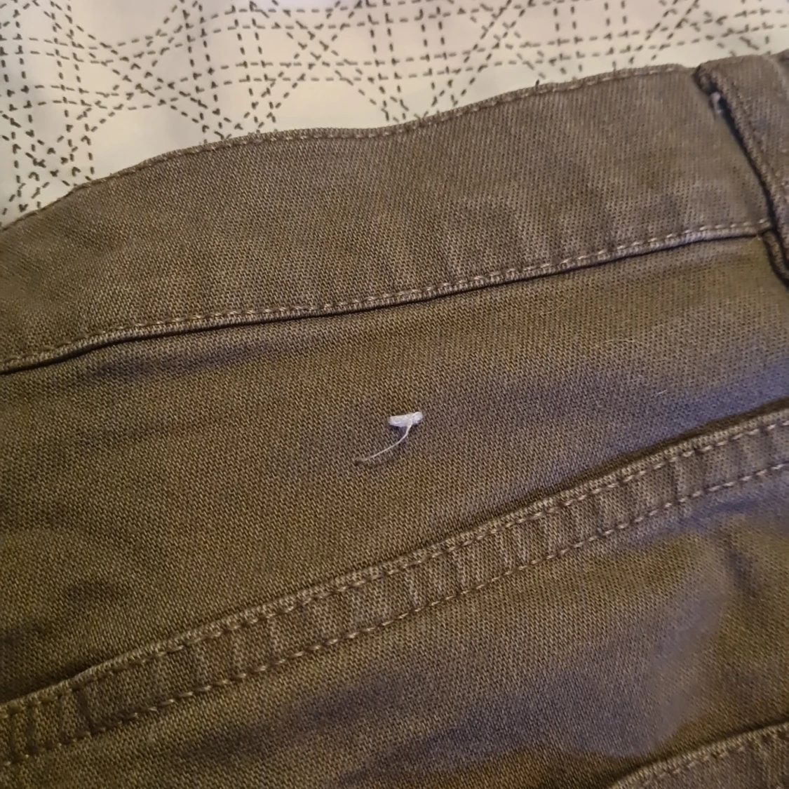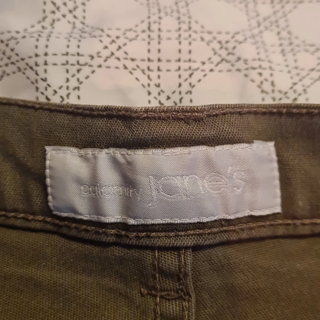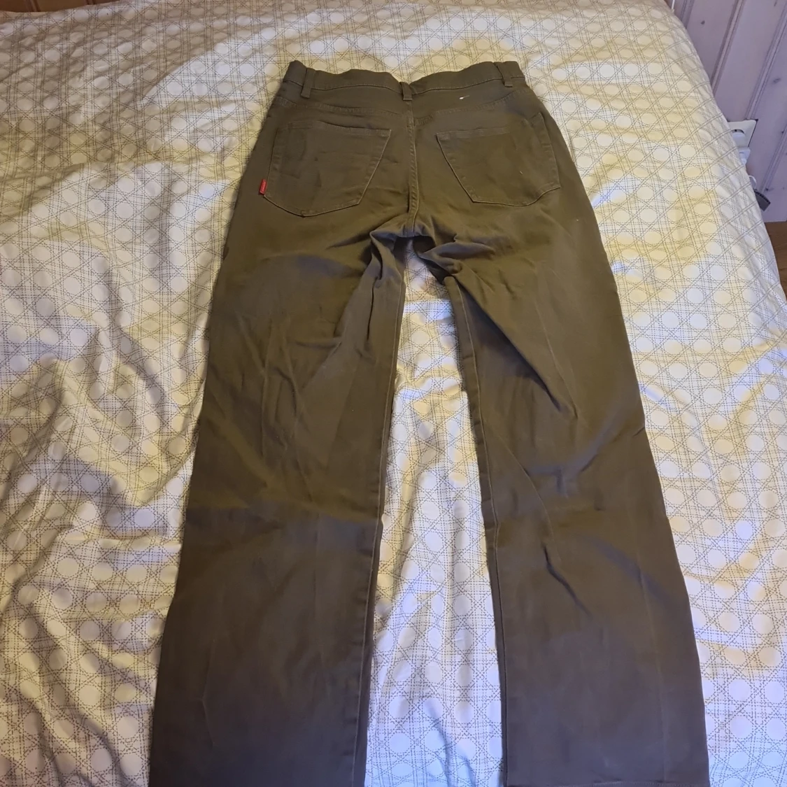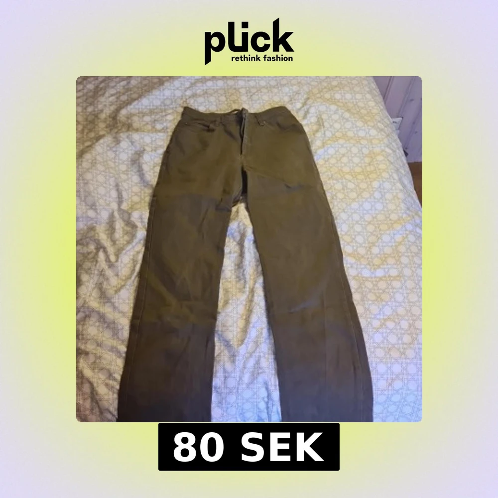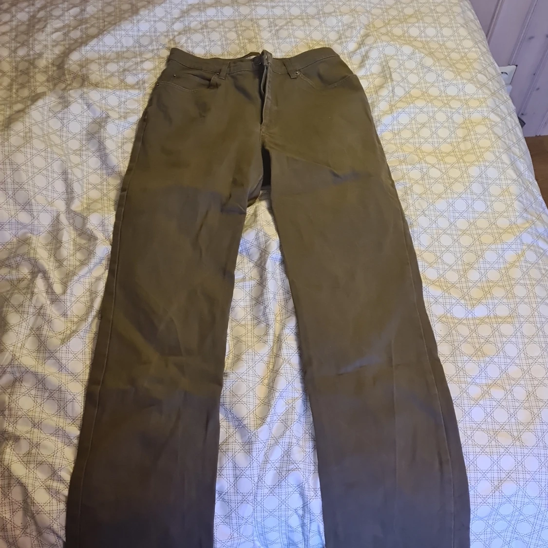 Snygga olivgröna byxor från Jane's i bomull. De har en klassisk design med dragkedja och knappar. Bra skick och bra passform, lite åt det mindre hållet.