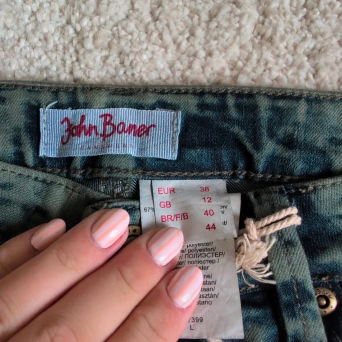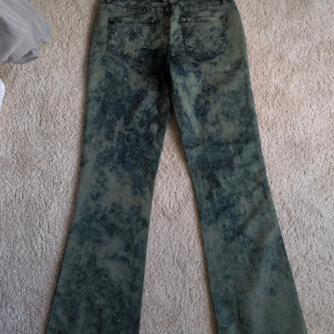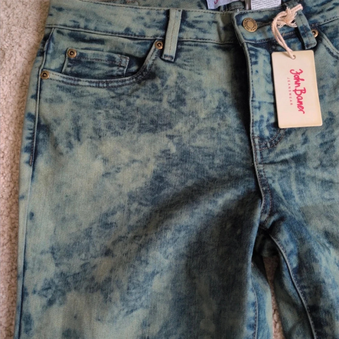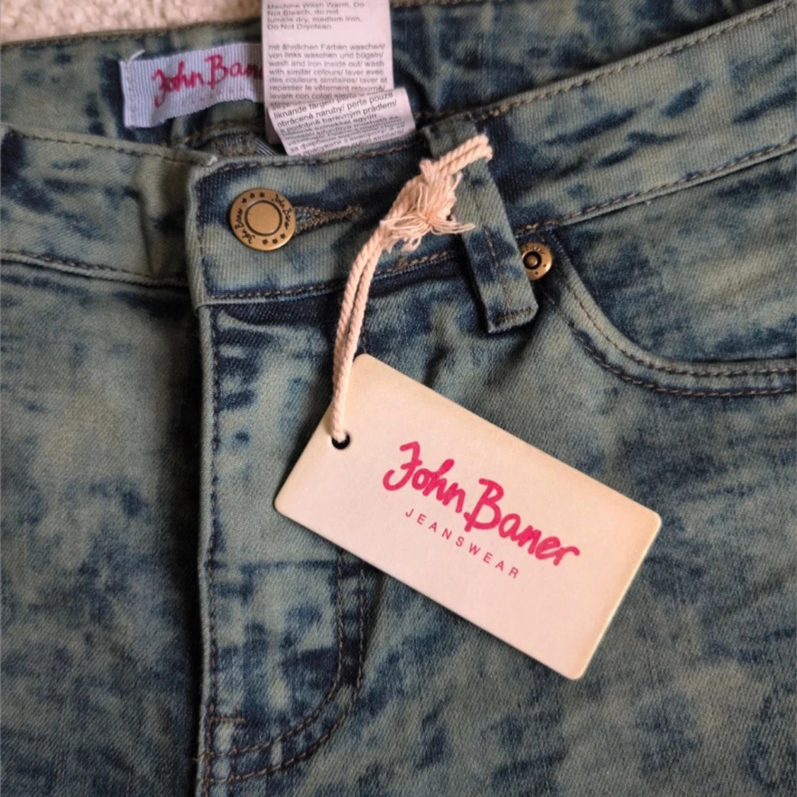 Snygga acid wash jeans från John Baner i bootcut-modell. Byxorna är blågrönaktiga med coolt mönster och klassiska fem fickor. Materialmix med bomull och polyester, perfekt för dig som gillar retrovibbar och unik stil.