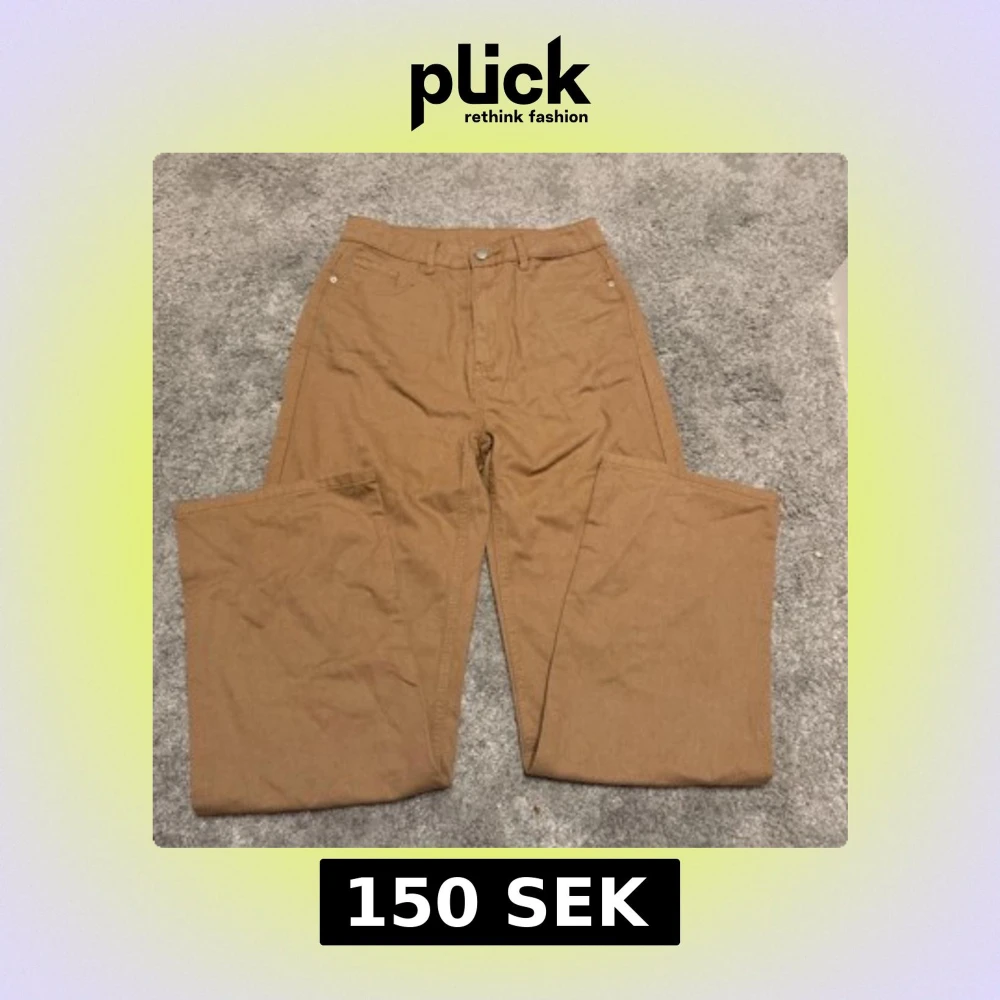 Säljer ett par stilrena brun byxor med hög midja och rak passform. Perfekta för en avslappnad men ändå snygg look. Byxorna har en klassisk design med knapp och dragkedja framtill.