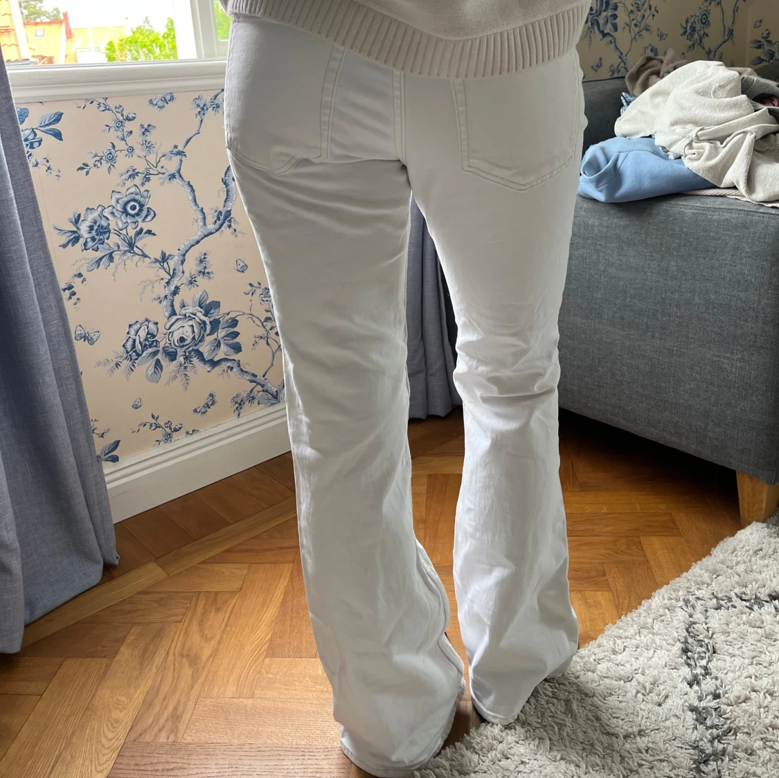 Snygga vita jeans med bootcut-modell och hög midja. Klassisk femficksdesign och raka ben som släpper ut nedtill. Perfekta för dig som vill ha en fräsch och stilren look. Materialet är mjukt och skönt bomullstyg.