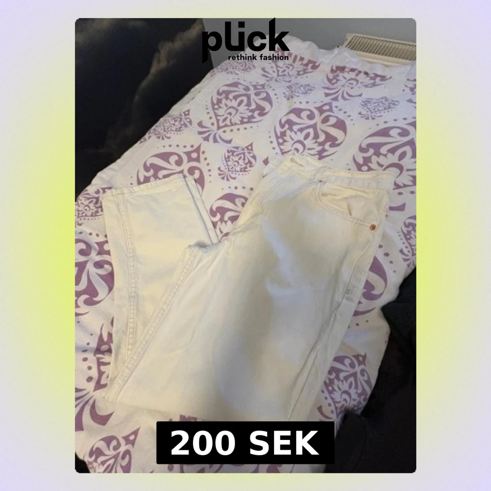 Säljer ett par vita mom jeans från MNG i storlek 40. Byxorna har klassisk femficksdesign, hög midja och raka ben. Materialet är kraftig bomull med dragkedja och knapp framtill. Perfekt för dig som gillar en chill och trendig look.
