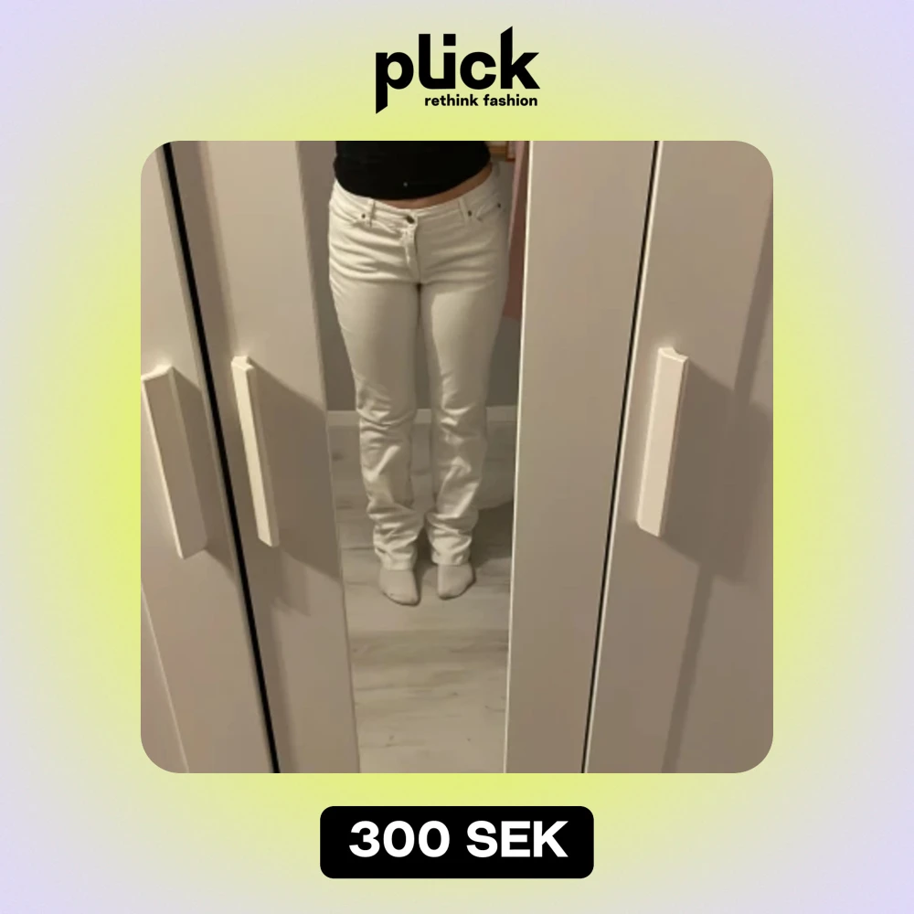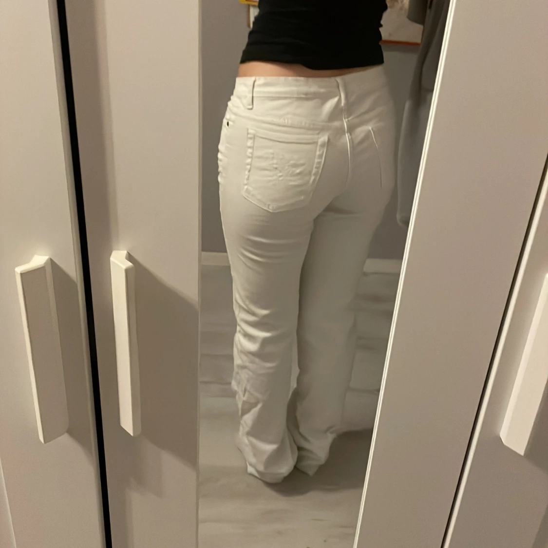 Lågmidjade vita utsvängda jeans som är använda några få gånger. Väldigt bra skick!