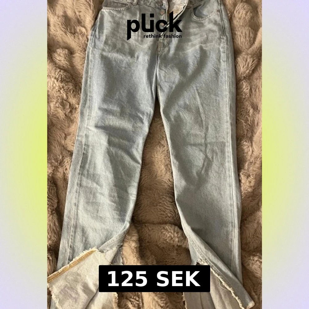 Snygga ljusblå jeans med raka ben och fransade slitsar vid bensluten. Klassisk femficksmodell med knappgylf och kontrastsömmar. Jeansen har en relaxed passform och är tillverkade i jeansmaterial. Perfekta för dig som gillar trendiga detaljer.