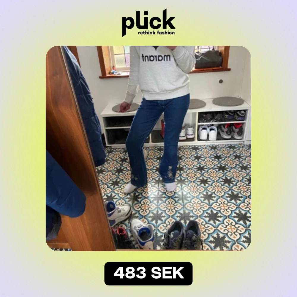 Jättecoola bootcut jeans i superbra skick med blomdetaljer.💗 Liten i storlek (passar mig som har storlek 36)
