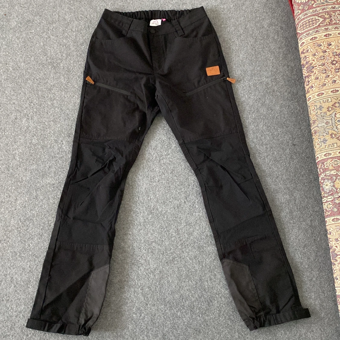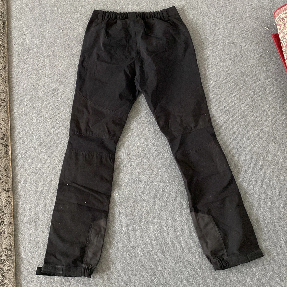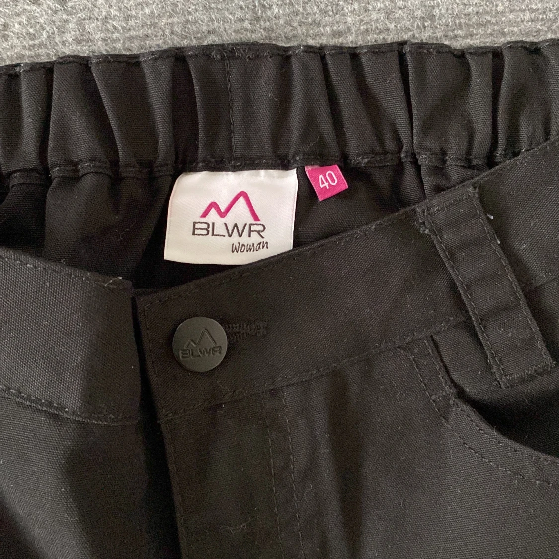 Svarta friluftsbyxor från BLWR Woman i storlek 40. Byxorna har elastisk midja, förstärkta partier vid knän och benslut, praktiska fickor med dragkedja och justerbara benslut med kardborre. Perfekta för utomhusaktiviteter och äventyr.