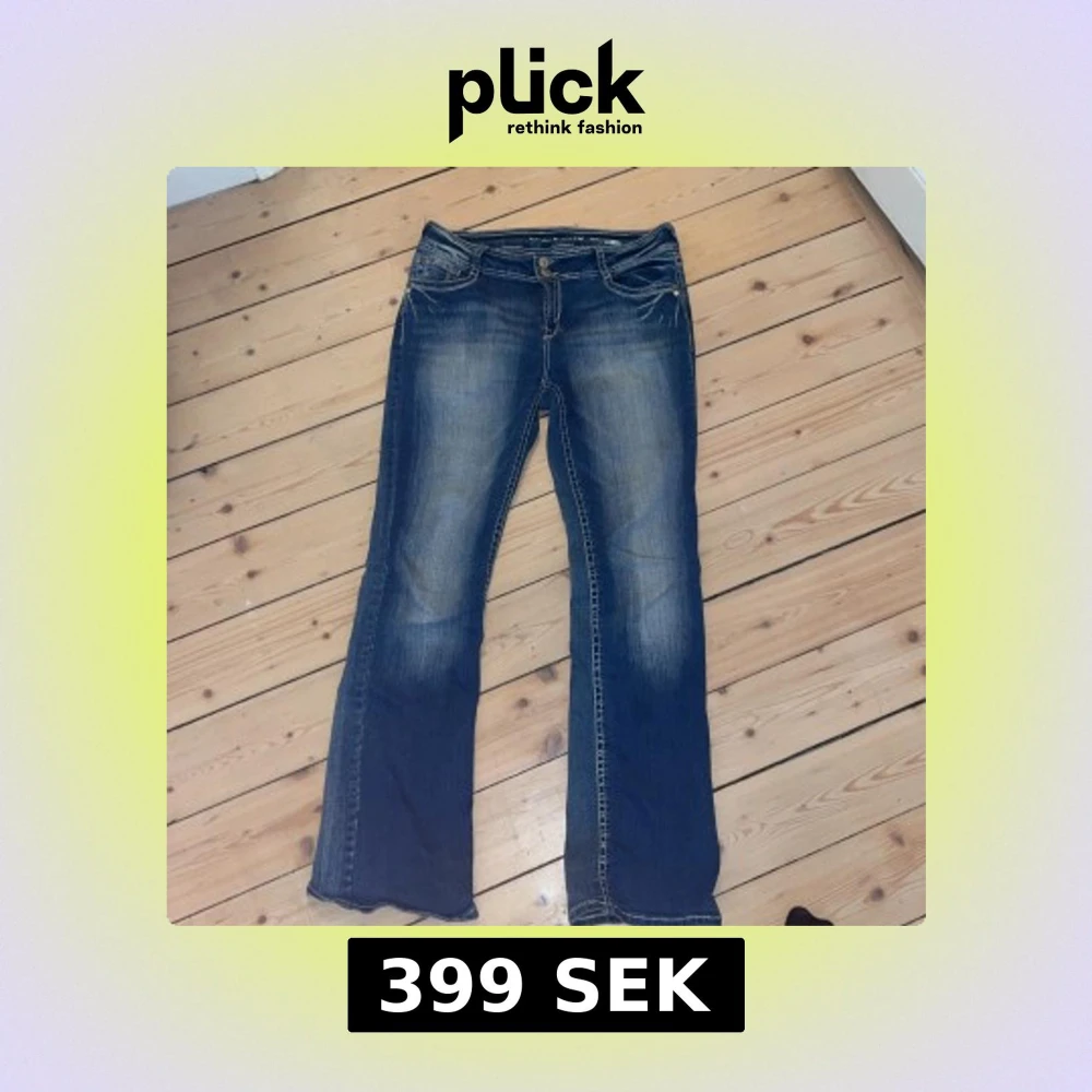 Snygga blå jeans från Wallflower med bootcut passform och coola broderade rosetter på bakfickorna. Jeansen har kontrastsömmar och slitningar framtill för en trendig look. Perfekta för dig som gillar detaljer och en klassisk jeansstil.