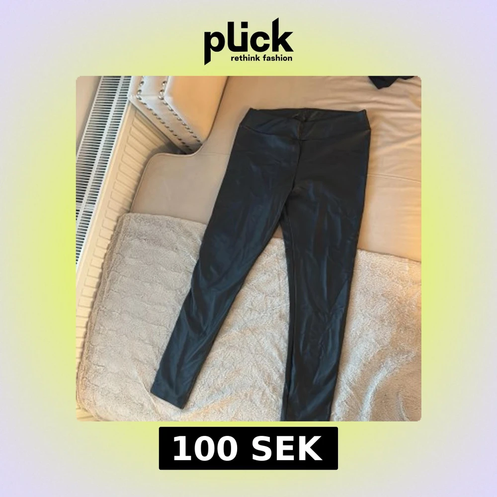 Snygga svarta leggings med glansig finish som ger en skinnlook. Hög midja och tight passform, perfekta att styla med oversized tröjor eller crop tops. Mjukt och stretchigt material för maximal komfort.