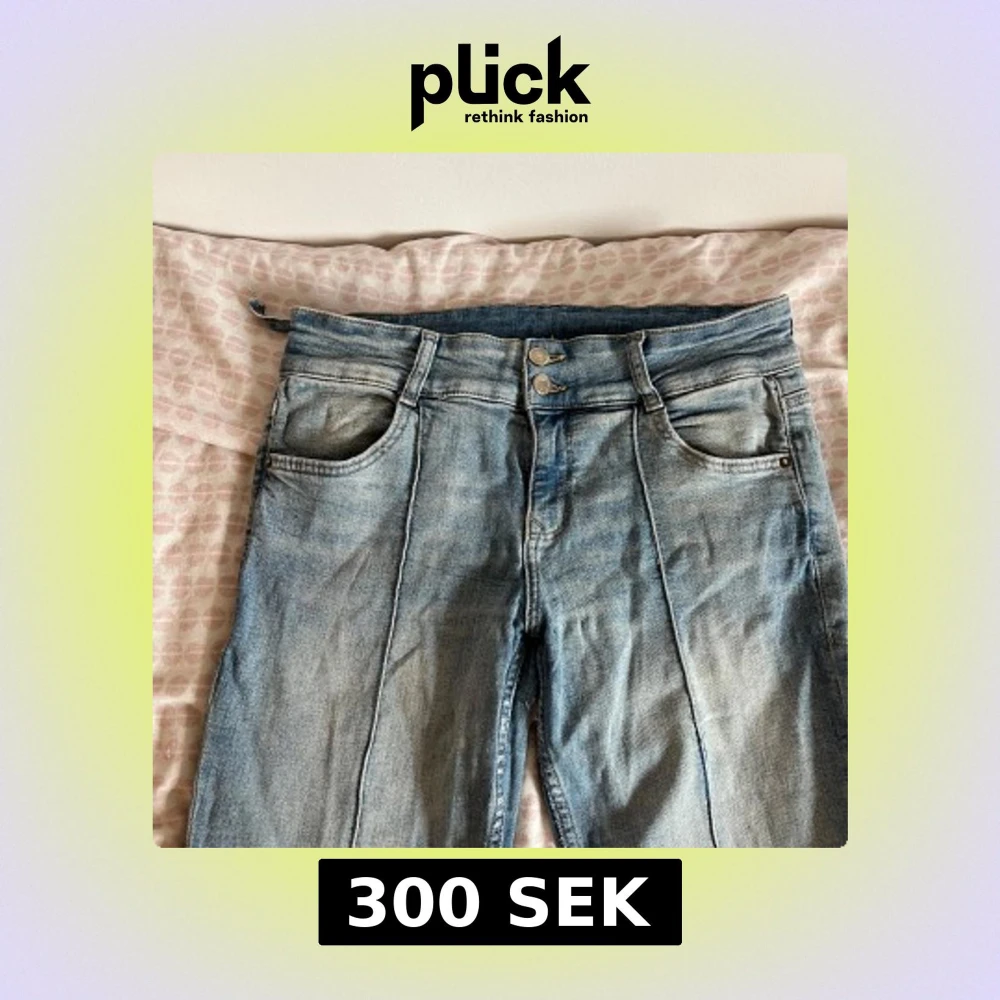 Säljer ett par blå bootcut jeans med markerade pressveck framtill. Jeansen har låg midja och en liten skada på sidan men som enkelt går att fixa. Pris kan diskuteras.