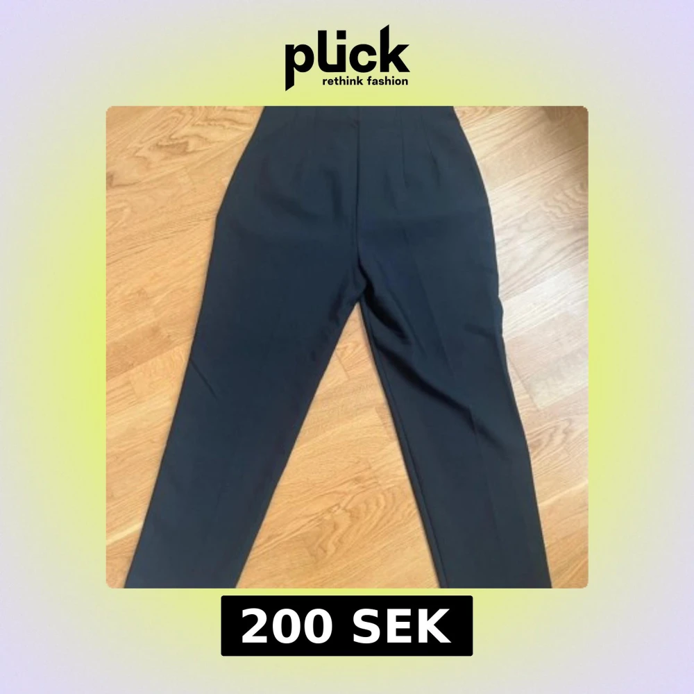 Snygga svarta kostymbyxor med hög midja och raka ben. Byxorna har pressveck och diskreta fickor bak, vilket ger en clean och stilren look. Perfekta för dig som gillar en klassisk men modern vibe.