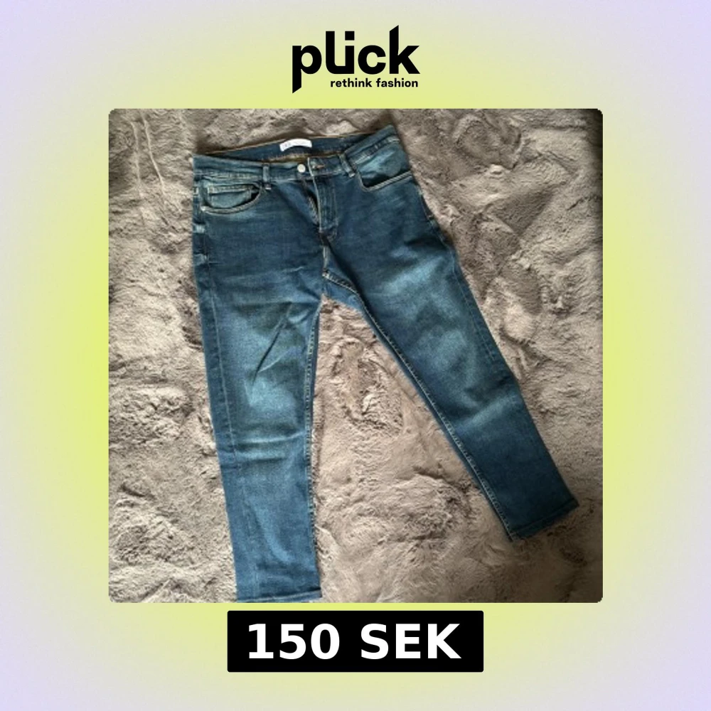 Snygga blå jeans från Zara Denimwear med klassisk femficksdesign och raka ben. Jeansen har normal passform och är tillverkade i ett mjukt denimtyg med lätt tvättad look. Perfekta för dig som gillar stilrena och bekväma jeans.