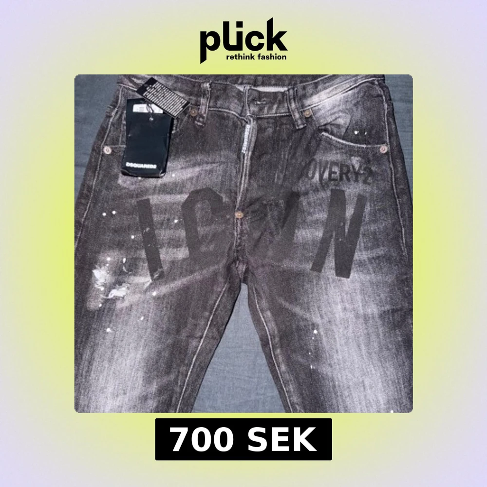 Snygga svarta Dsquared2 Skater Jeans med stor 'ICON'-print framtill och slitna detaljer. Jeansen har coola färgstänk och slitningar både fram och bak, samt klassisk femficksdesign. Materialet är robust denim och passformen är modern och trendig.