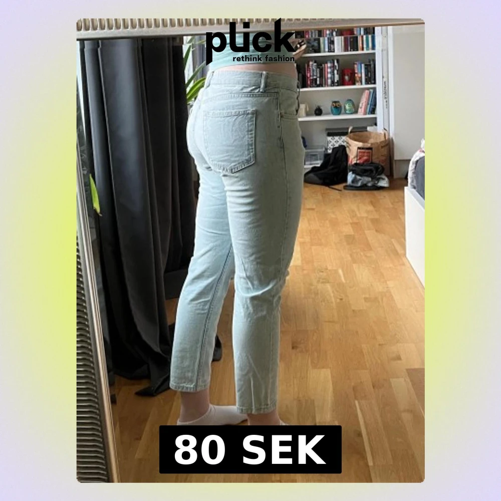 Ljusblå jeans från Zara storlek EUR 44. De kommer från herravdelningen. Om de ser korta ut kan de va för att jag har långa ben, jag är 176 cm
