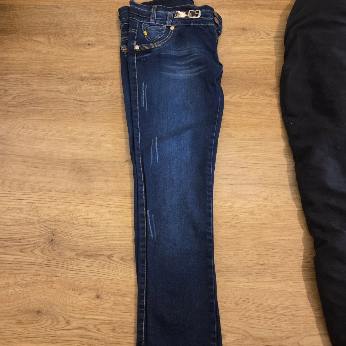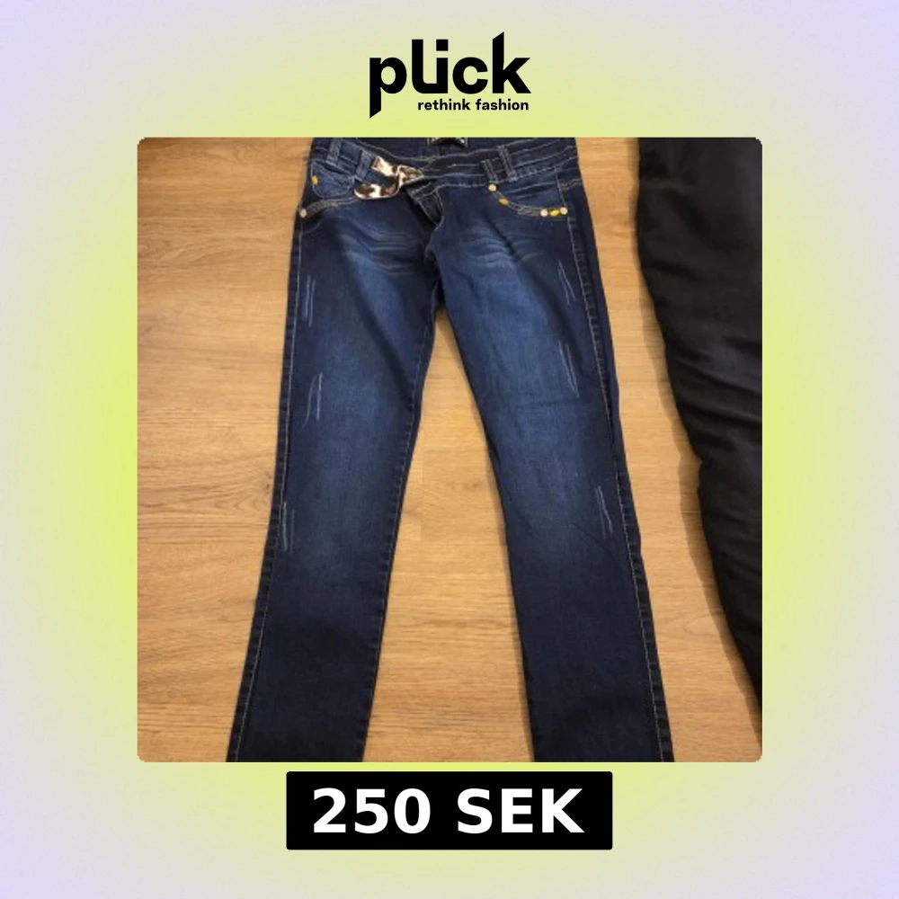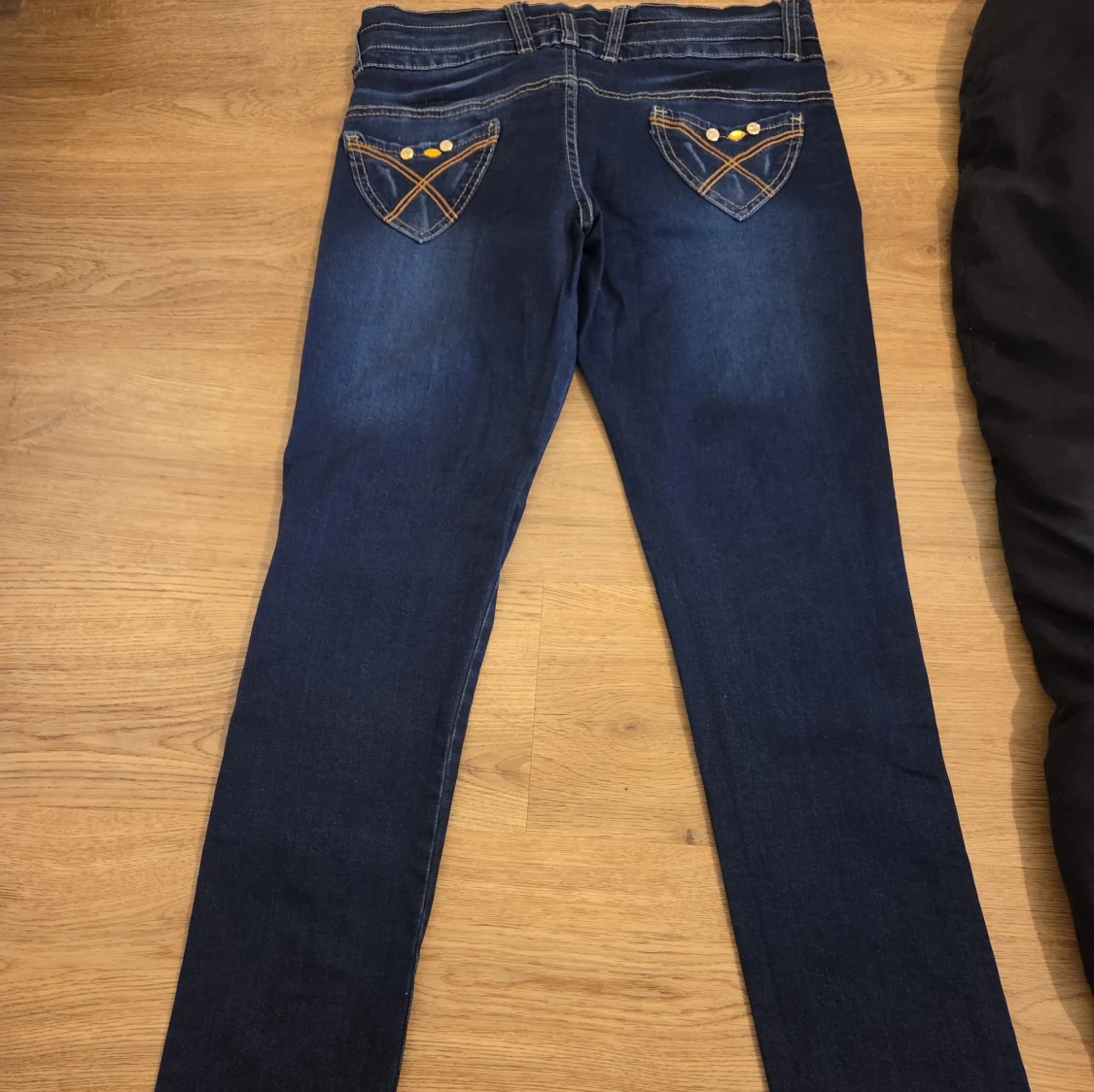 Snygga mörkblå skinny jeans med coola slitningar och dekorativa nitar på fickorna. Byxorna har ett leopardmönstrat bälte och kontrastsömmar på bakfickorna. Perfekta för dig som gillar detaljer och en smal passform.