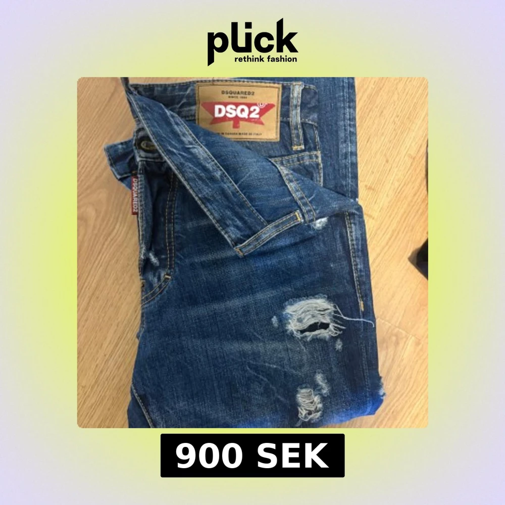 Snygga blå jeans från DSQUARED2 med coola slitningar och trasiga detaljer på framsidan. Klassisk femficksmodell med tydliga kontrastsömmar och läderpatch bak. Perfekt för dig som gillar en edgy streetstil.