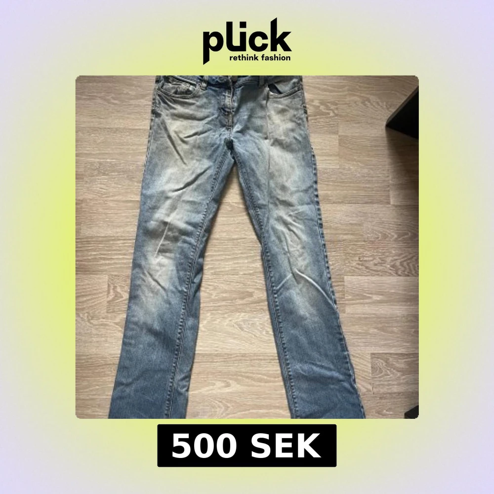 Säljer ett par ljusblå jeans från R&S. Jeansen har raka ben och normal passform, med detaljerade sömmar på bakfickorna och läderpatch i midjan. Storleken är 44 men väldigt små i storlek. Skulle säga S Jättefina jeans!!