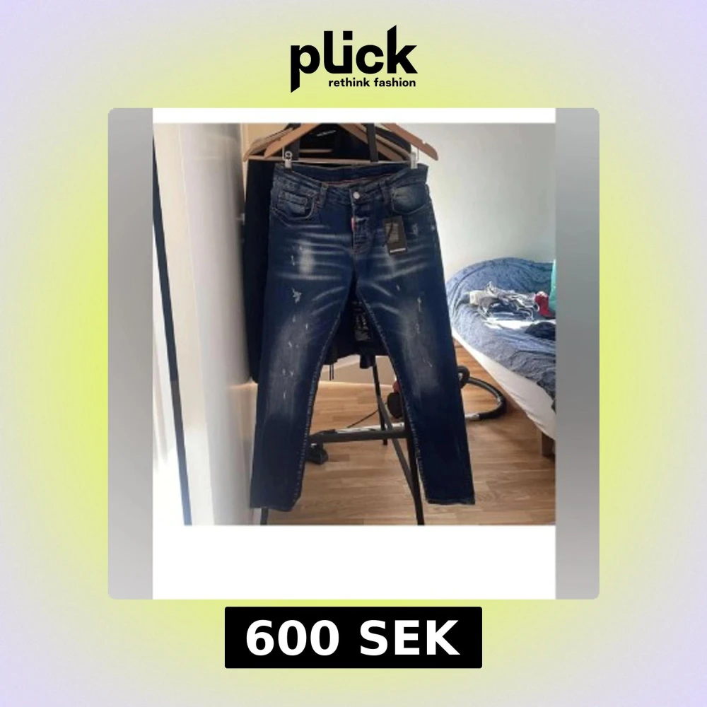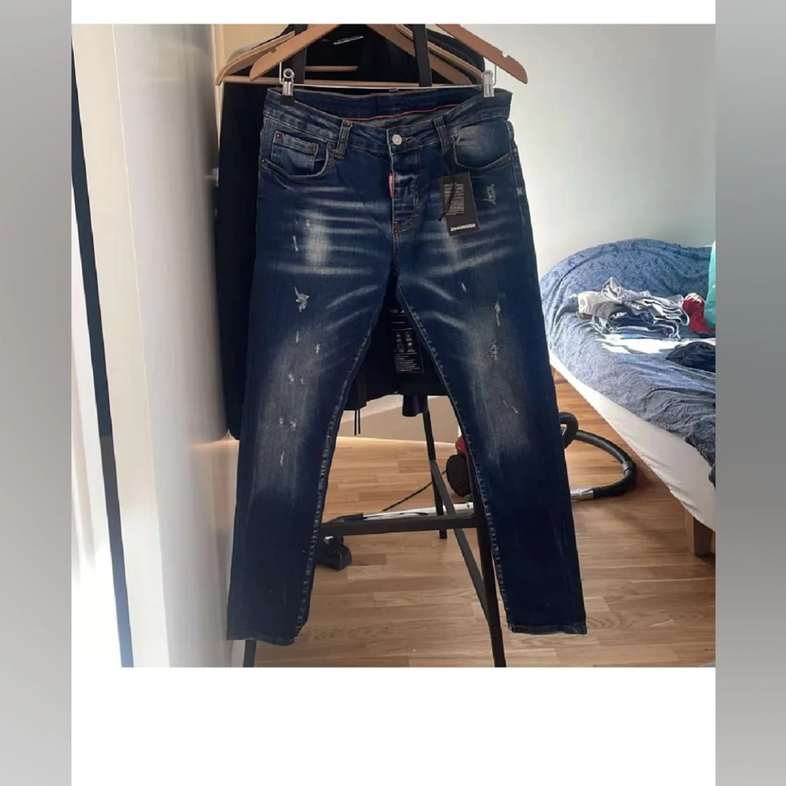 Snygga blå jeans från Dsquared2 med slitna detaljer och skinny passform. Jeansen har klassisk femficksdesign, tydliga slitningar framtill och Dsquared2-logga bak på linningen. Perfekta för dig som gillar en modern och trendig look.