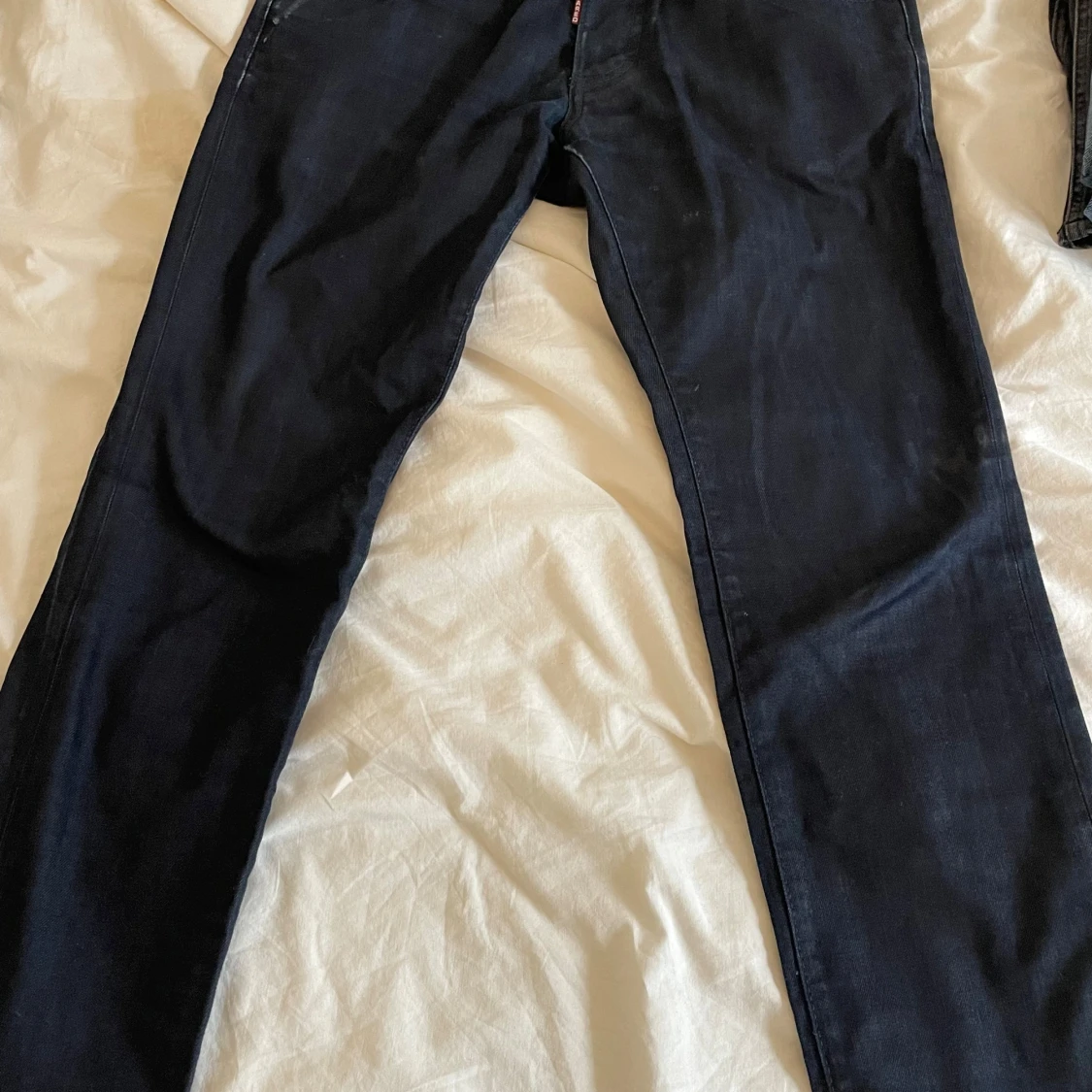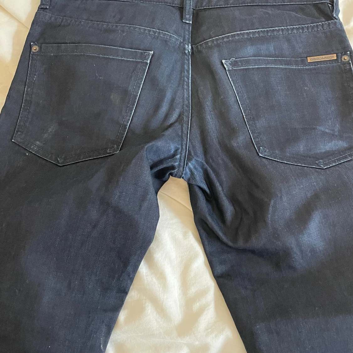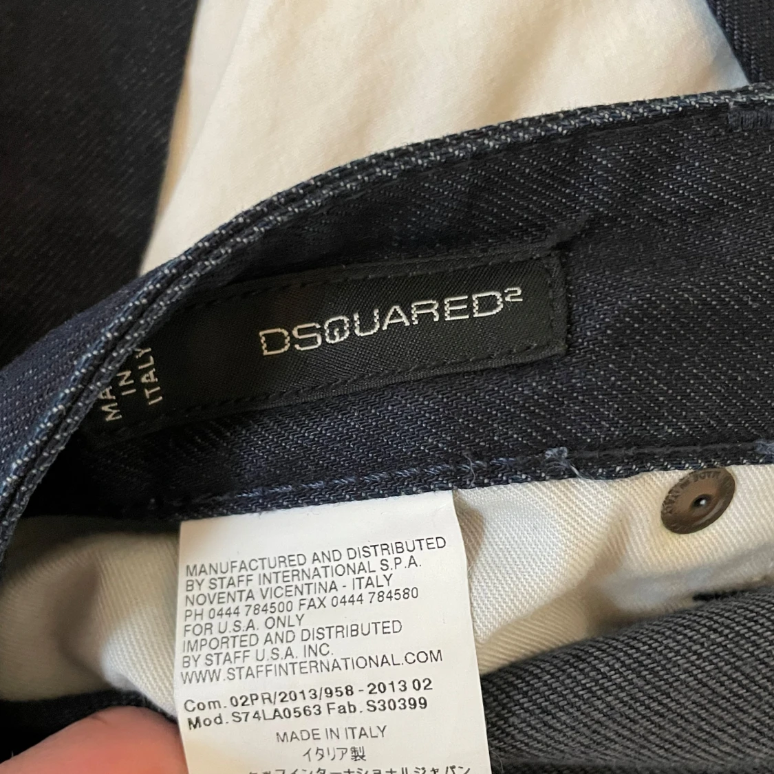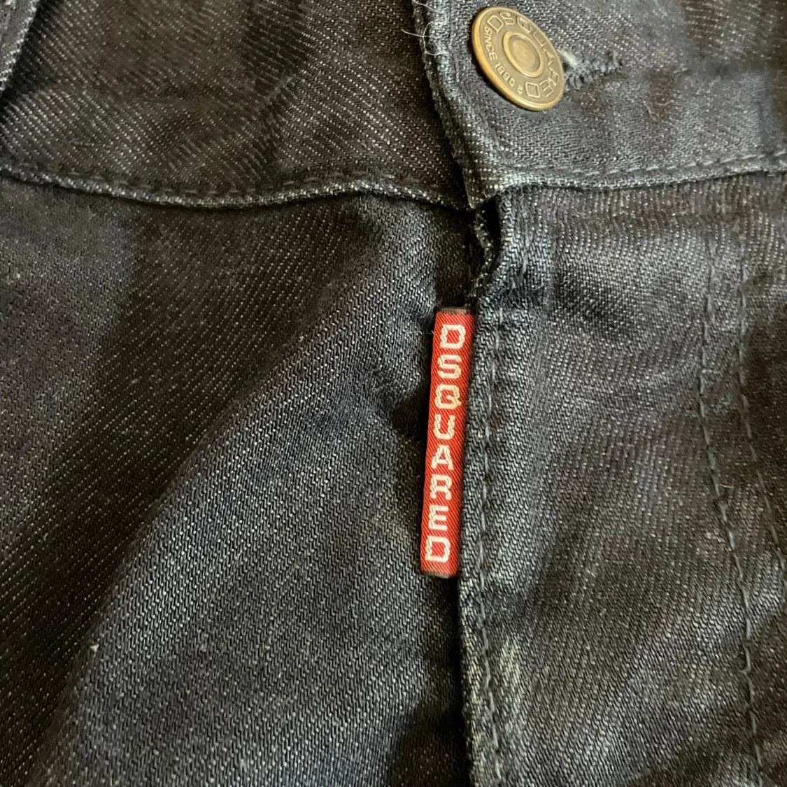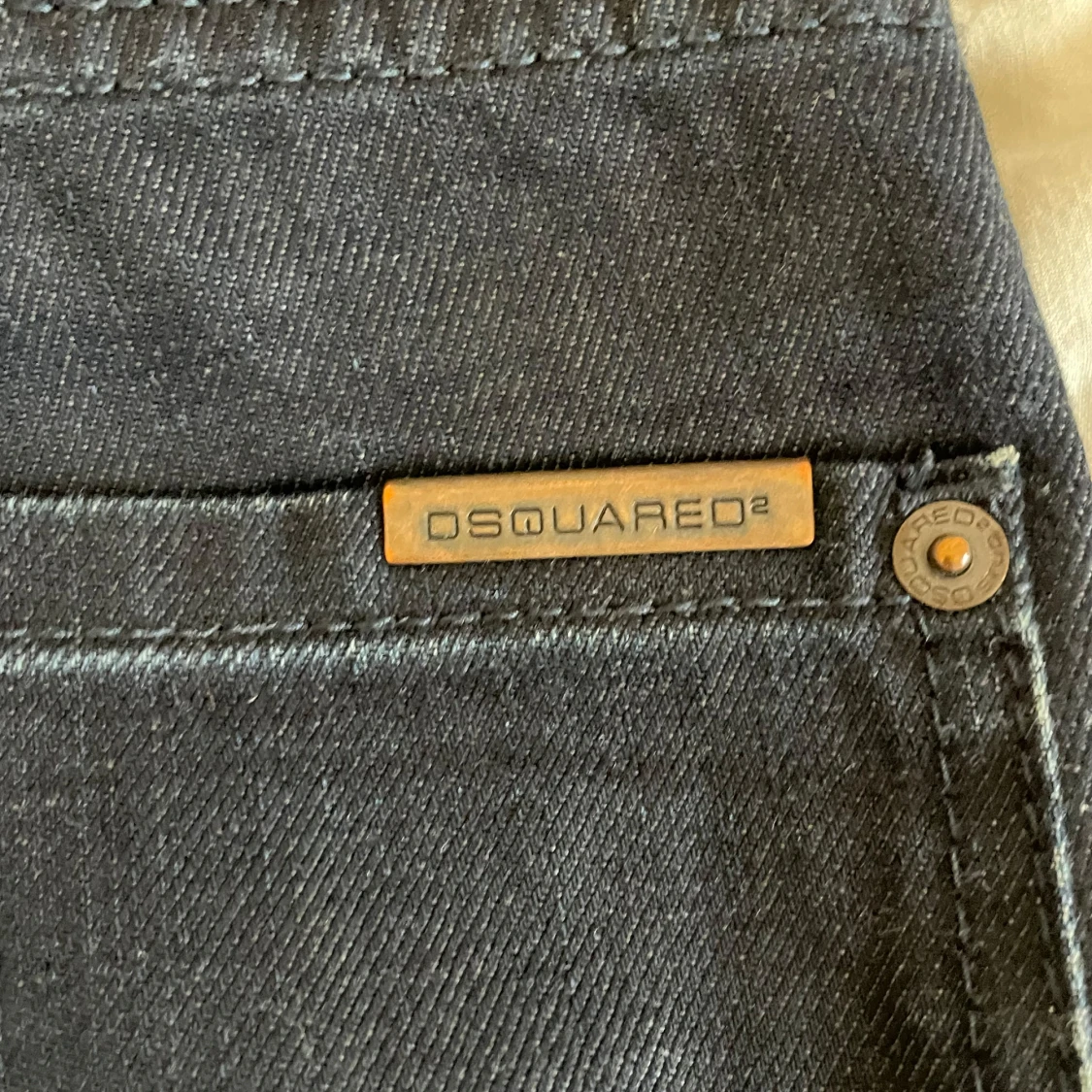 Snygga svarta jeans från Dsquared2 med klassisk femficksdesign. De har en diskret logga på bakfickan och en röd etikett vid gylfen. Perfekta för en stilren look.