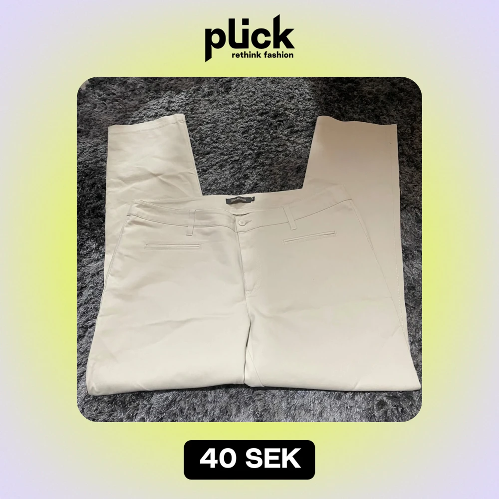 Säljer ett par stilrena beige byxor från Alice Bizous i storlek 46. Byxorna har en klassisk design med raka ben och diskreta fickor. Perfekta för både vardag och festliga tillfällen. De är i nyskick och redo att bäras av någon som vill ha en tidlös look.