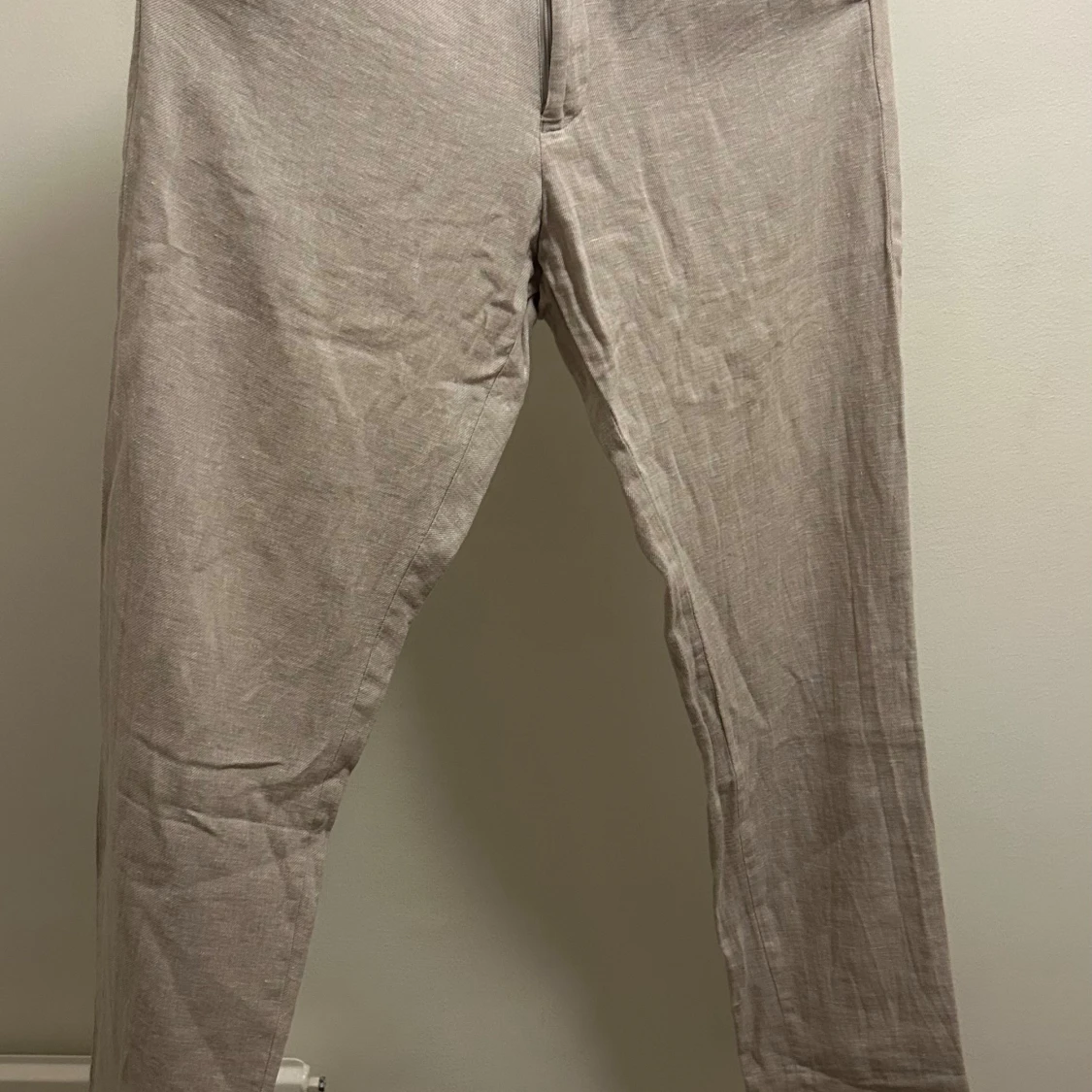 Snygga beige linnebyxor från Riley i slim fit-modell. Byxorna är tunna och lätta, perfekta för varmare dagar. De har en stilren look och är tillverkade i linne för en luftig känsla. Passar dig som gillar en smalare passform och enkel stil.