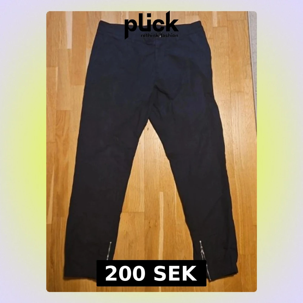 Blå byxor i smal passform med dragkedjor vid bensluten. Snygg minimalistisk look som passar till det mesta. Tillverkade i ett mjukt bomullsmaterial för skön känsla hela dagen.