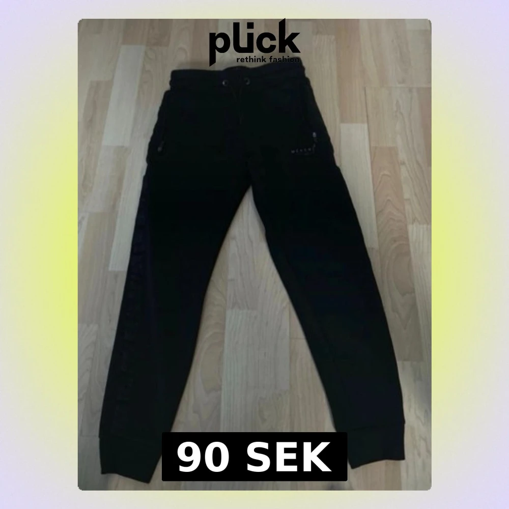 Svarta mjukisbyxor från McKenzie med dragsko i midjan och dragkedjor på fickorna. Byxorna har en slim passform och är gjorda i mjukt material som är perfekt för chill eller träning. Snygg logga på ena benet och ribbade muddar vid bensluten. Storlek M