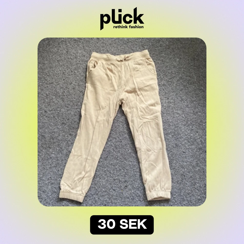 Säljer ett par bekväma beige mjukisbyxor i storlek 157/160. Byxorna har en elastisk midja med snörning och muddar vid bensluten. Perfekta för en avslappnad dag hemma eller för att chilla med kompisar. De är i bra skick och redo för en ny ägare! Köparen betalar för frakt!