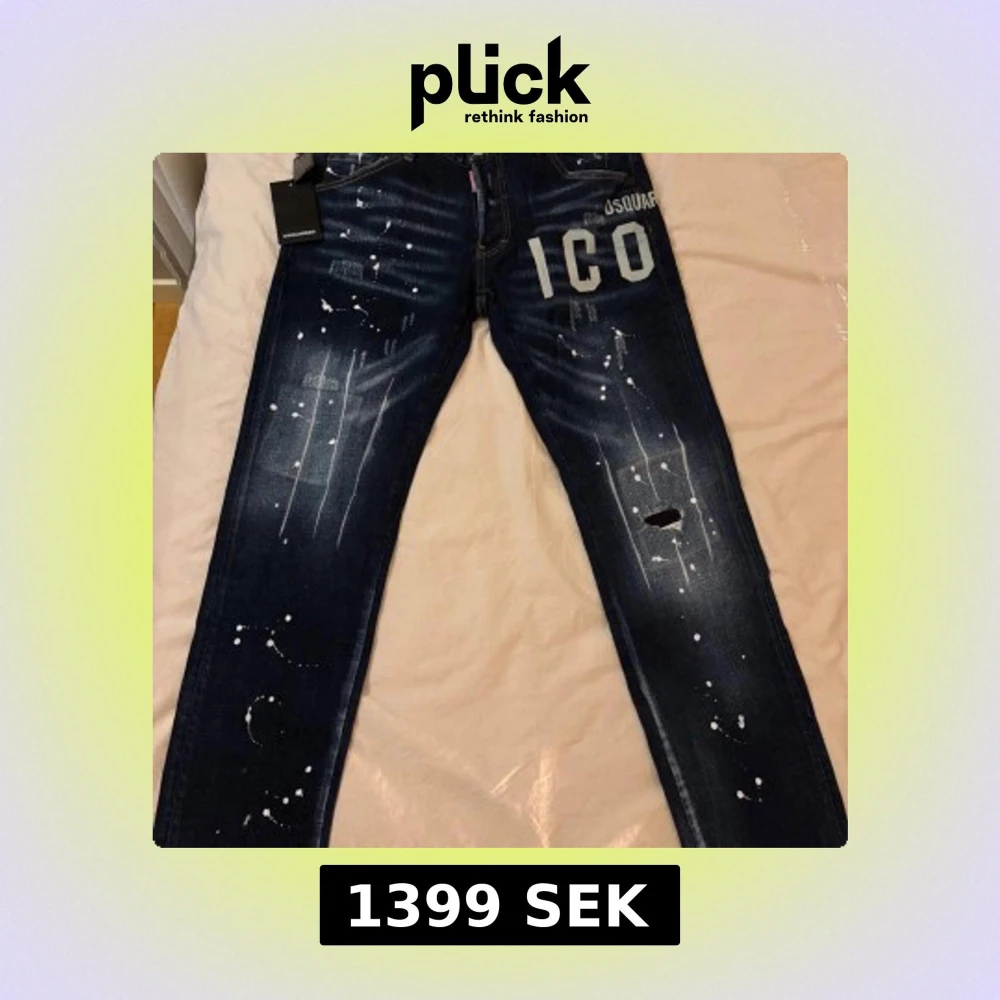 Jätte fina jeans! Sprillans nya i påse! Marknadens överlägset finaste kvalitet! Storlek 50, motsvarar 86CM vid midjan!
