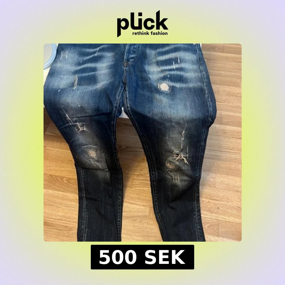 Riktigt snygga blå jeans från Dsquared2 med slitningar och trasiga detaljer på benen. Jeansen har en klassisk femficksmodell, coola slitningar både fram och bak samt Dsquared2-patch bak i midjan. Perfekt för dig som gillar en edgy streetstil.