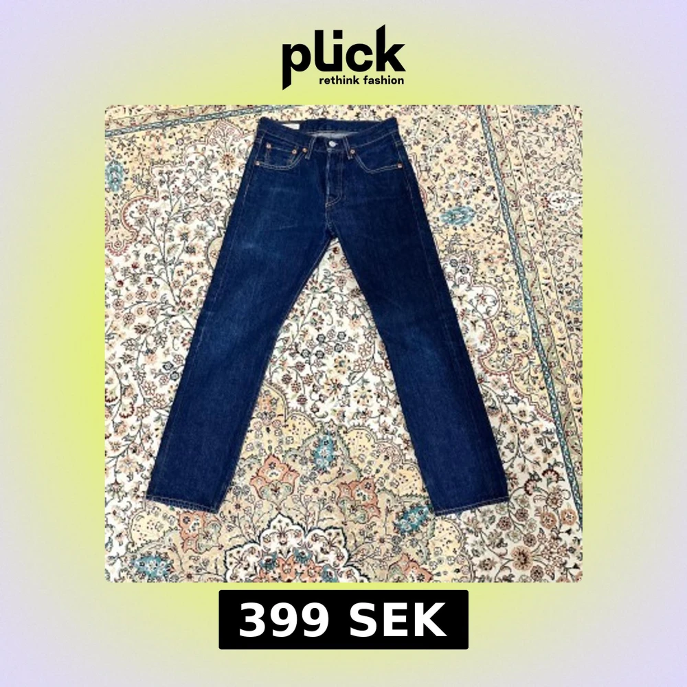 Säljer ett par klassiska Levis 501 jeans i mörkblå denim. De har en rak passform och är lågmidjade med den ikoniska Levis-lappen baktill. Perfekta för en tidlös stil. Knappast använda. nypris går för 1299