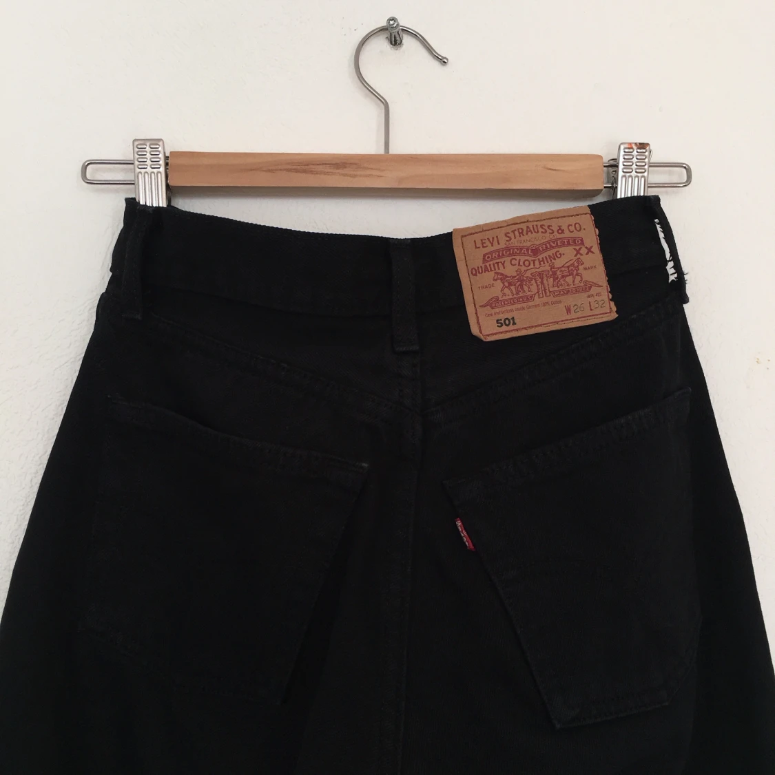 Fina svarta vintage Levis i 100% bomull. Rare. Storlek 26/32 men avklippta nertill så något kortare. Superfina!!!! Å knappt använda. Spårbar frakt ingår.