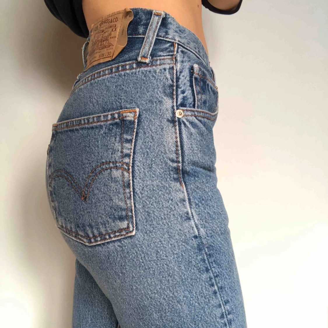 Ljusblå 501-jeans från Levis köpta second hand. Står w28 men passar mig som är 26-27. Fint skick, säljes då jag har flera. Köparen betalar frakt, alt upphämtning i Gävle eller Uppsala!