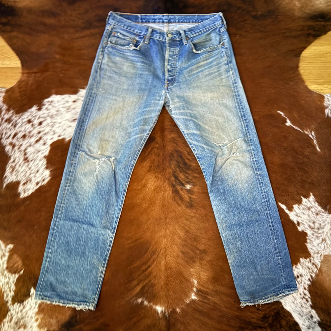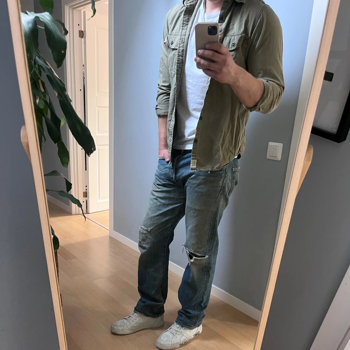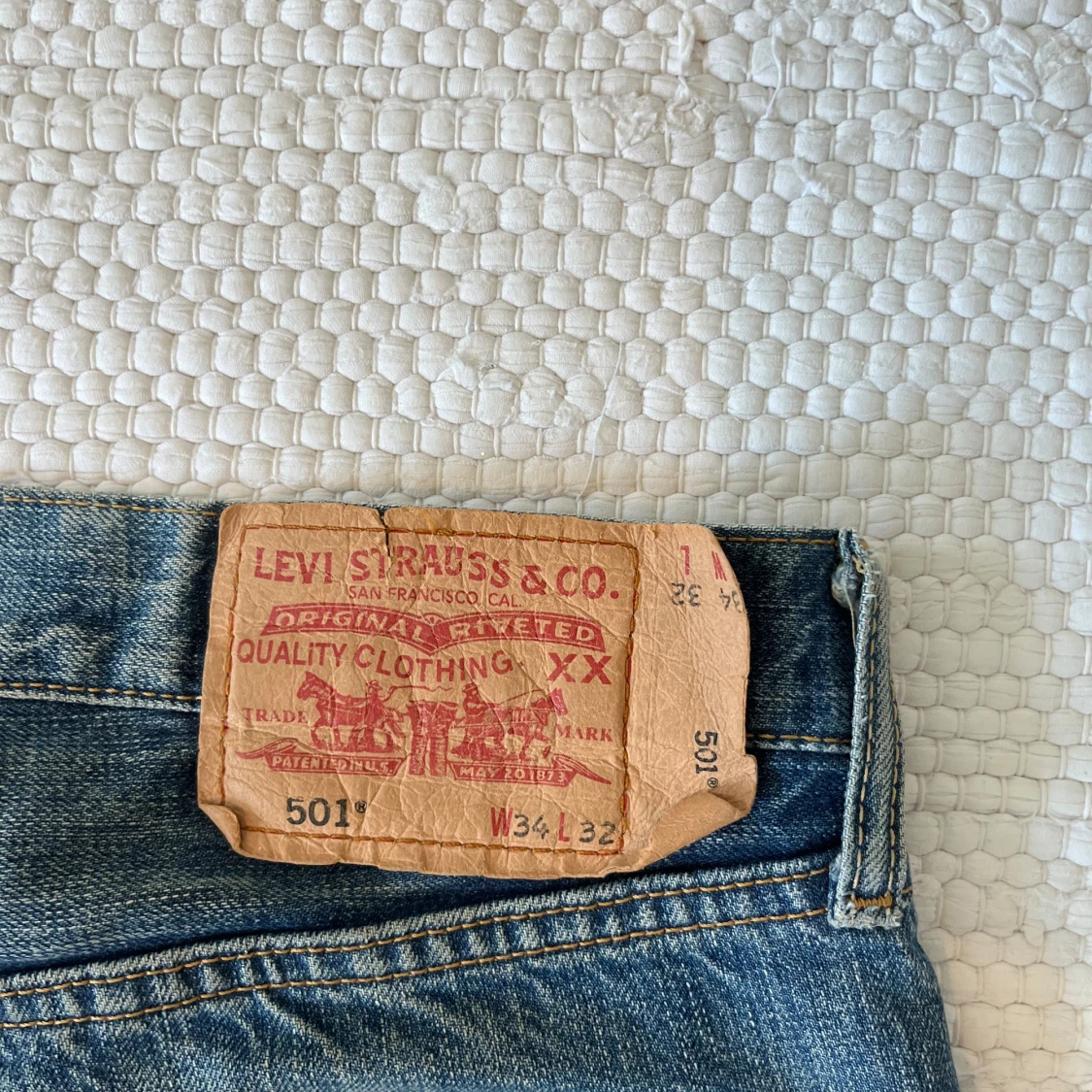 Tjena! Säljer dessa galet feta vintage Levis jeans i modellen 501, jeansen har en riktigt fin vintage tvätt med feta slitningar, storleken är W34/L32, hör av dig vid funderingar!🙌