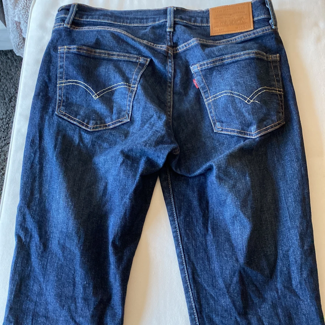 Snygga Levis 511 jeans i en klassisk blå färg. Dessa jeans har en normal passform och är tillverkade i slitstarkt denim. Perfekta för en stilren look med fem fickor och knappgylf. Lite mindre i storleken och är tapered.