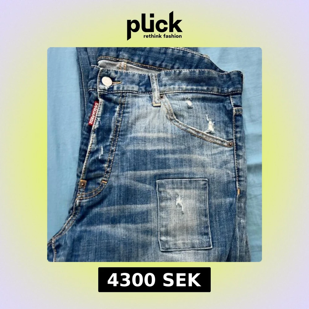 Riktigt snygga blå jeans från Dsquared2 med slitningar, patchade detaljer och coola trasiga partier. Jeansen passar för nån som har storlek m-L mycket fina använt 2 3 ggr tyvär inget kvitto. De är ett par äkta dsqured!