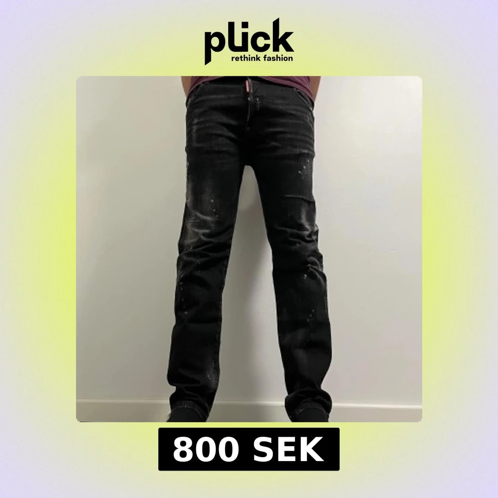 Svarta jeans från Dsquared2 med en sliten still. De har en klassisk femficksdesign och en diskret logga på fickan. Storlek: 52 men passar för 50/54 också. Inget kvitto ingår i köpet och därför kan jag gå ner i några hundralappar i pris!