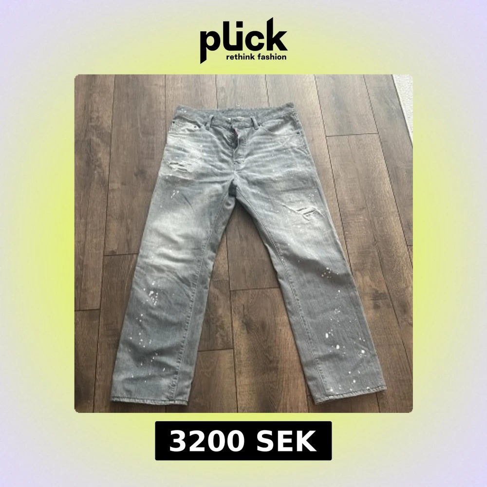 Snygga grå jeans från Dsquared2 med coola slitningar och vita färgstänk för en edgy vibe. Klassisk femficksmodell i bomull med rak passform och diskret Dsquared2-logga vid fickan. Perfekta för dig som vill sticka ut med en streetinspirerad look. Äkta jeans, kvitto finns med!! Original pris, just nu högstabud på 1995kr