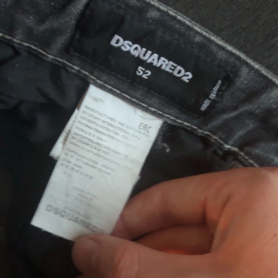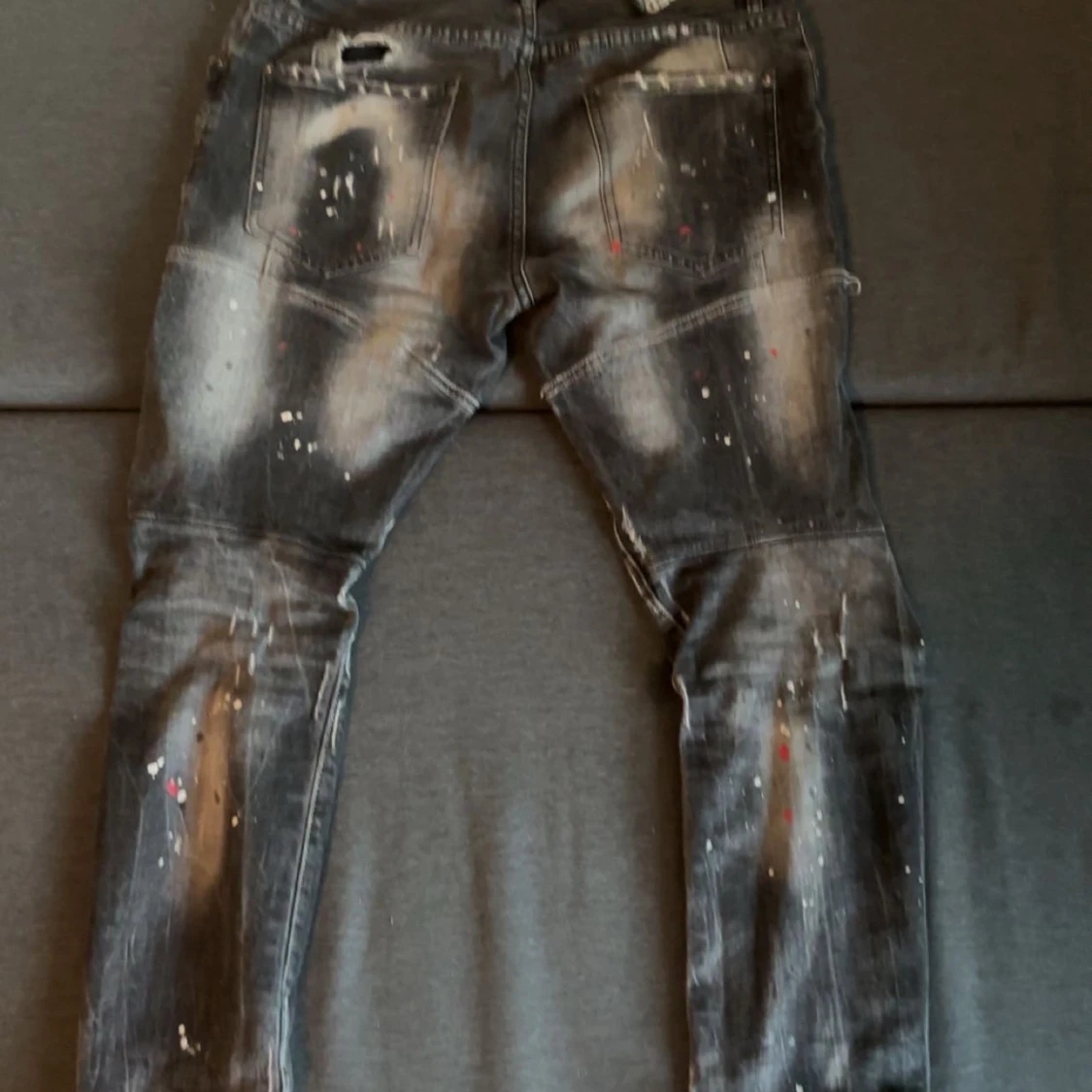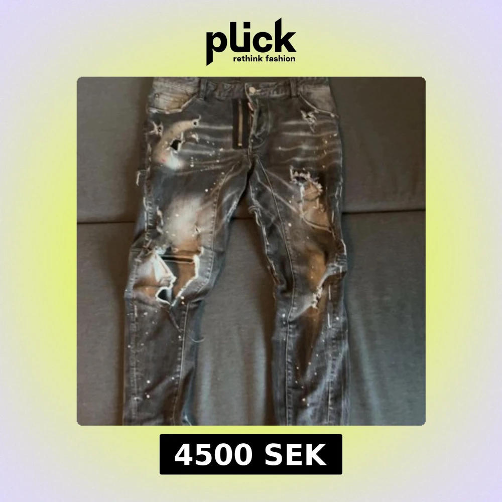Riktigt feta svarta jeans från Dsquared2 med slitna detaljer, hål och färgstänk för en rå streetlook. Jeansen har dragkedja, klassisk femficksdesign och Dsquared2-logga bak. Materialet är jeans i bomull och passformen är slim. Kan sänka priset med snabb handling!