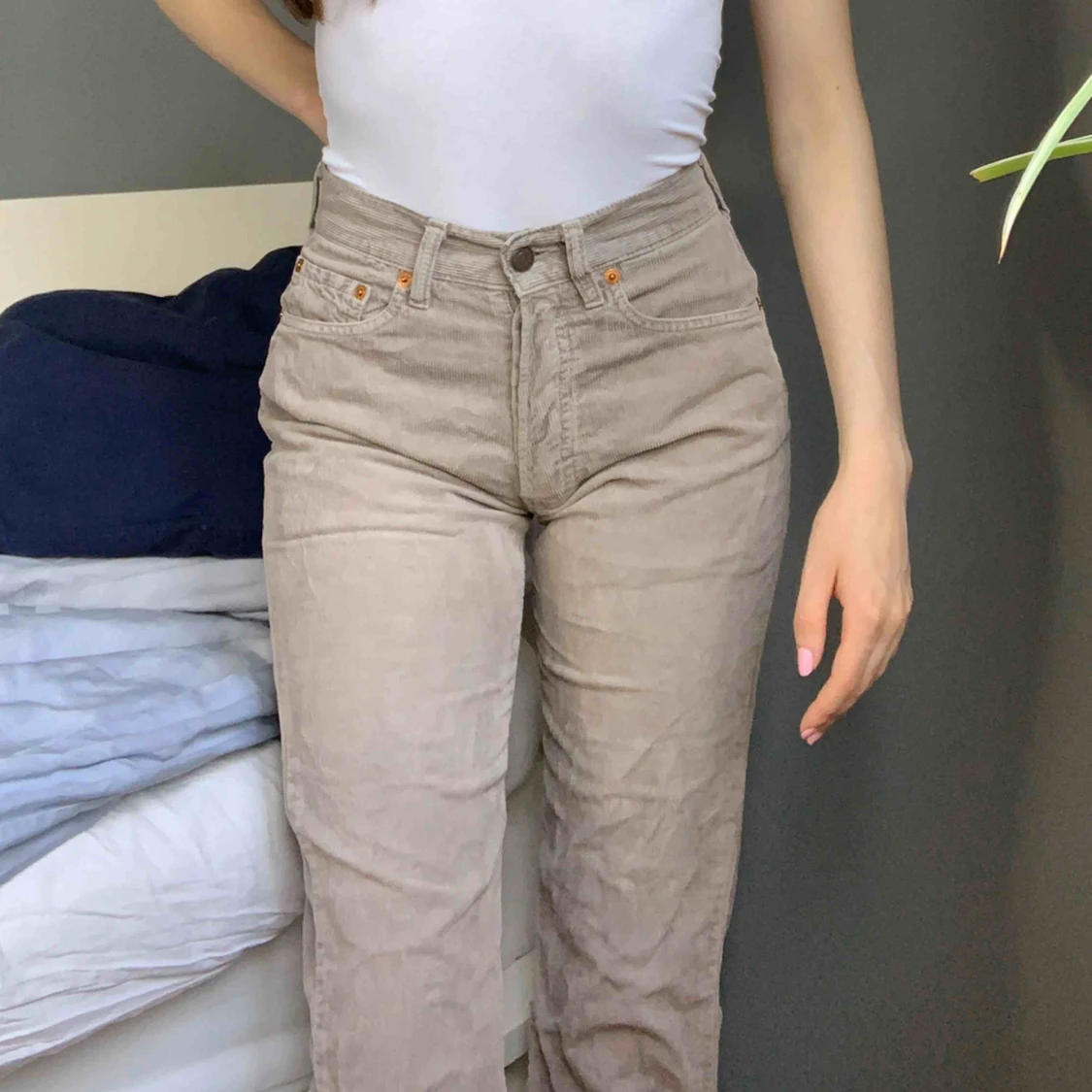 säljer dessa ljuvliga levi’s byxor i beige manchester, modellen är 551 och har lite högre midja än typ 501:orna. passar mig perfekt men kommer tyvärr inte till användning längre. innerbenslängd: ca 68 cm midjemått: ca 62 cm. i priset ingår spårbar frakt🌸