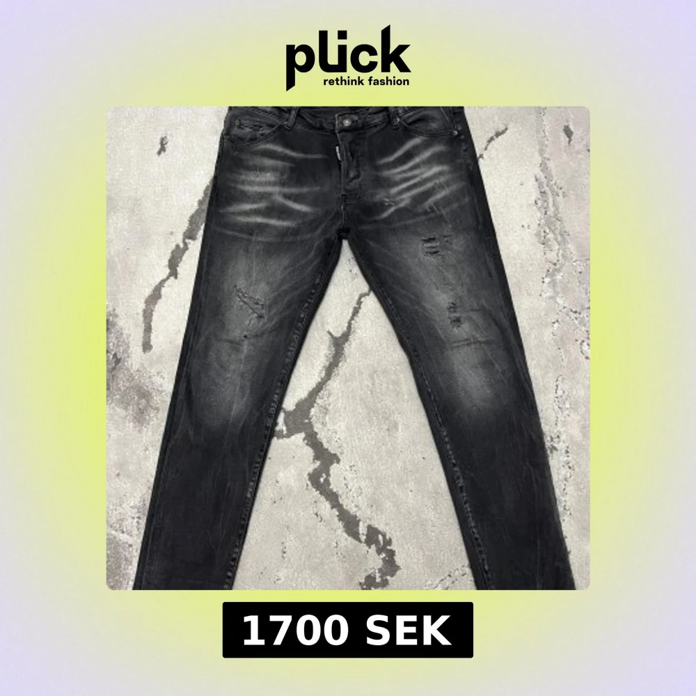 Snygga svarta jeans från Dsquared2 med slitna detaljer och en cool tvättad look. De har en klassisk femficksdesign och knappgylf. Perfekta för en trendig stil. Byxorna är storlek 56 och om ni vill ha några mer bilder eller om ni har några frågor är det bara att skriva