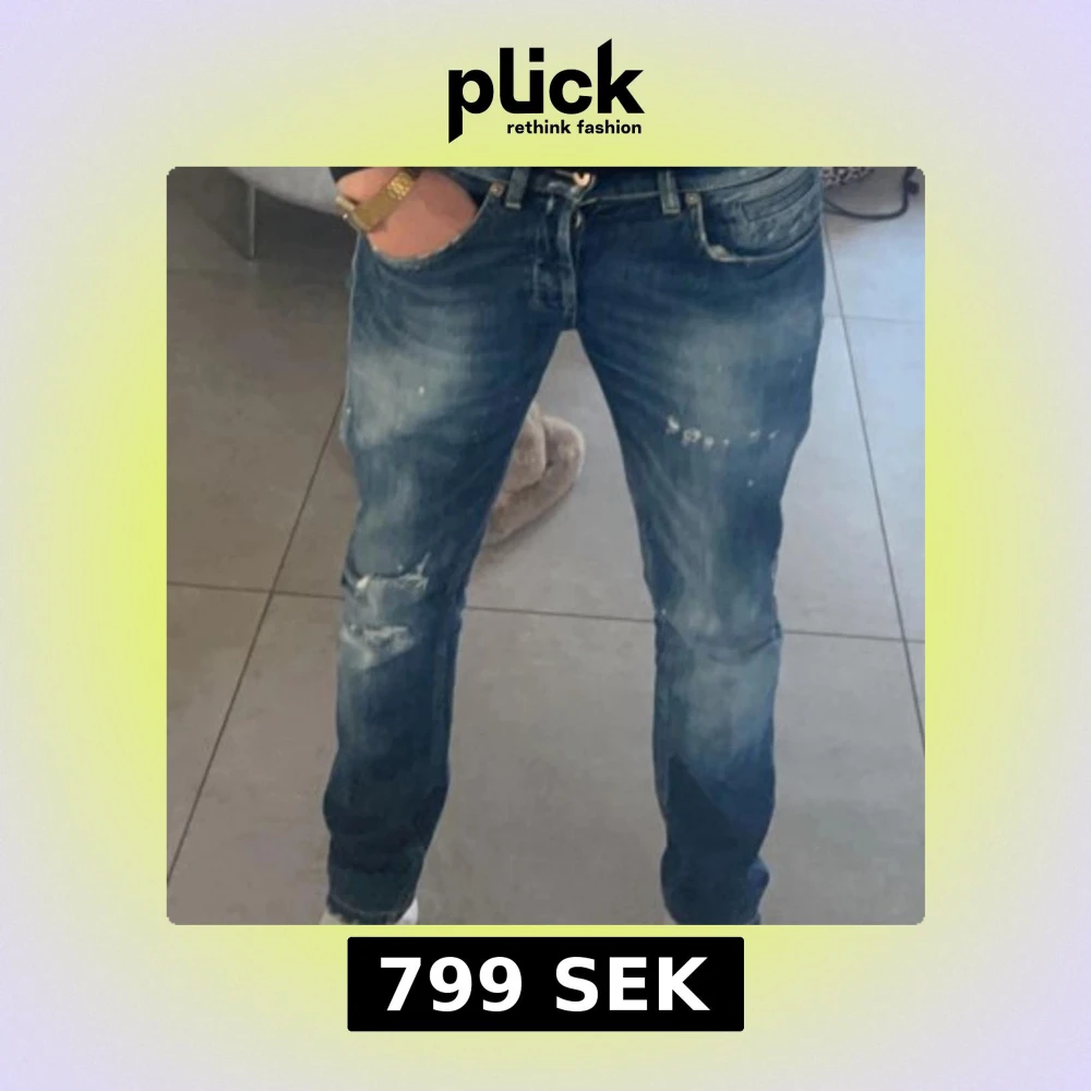 Säljer ett par Dondup George jeans i mörkblå tvätt med coola slitningar och detaljer. Modellen är slim och har klassiska fem fickor, dragkedja och knapp. Perfekt för dig som gillar en streetig och avslappnad stil.