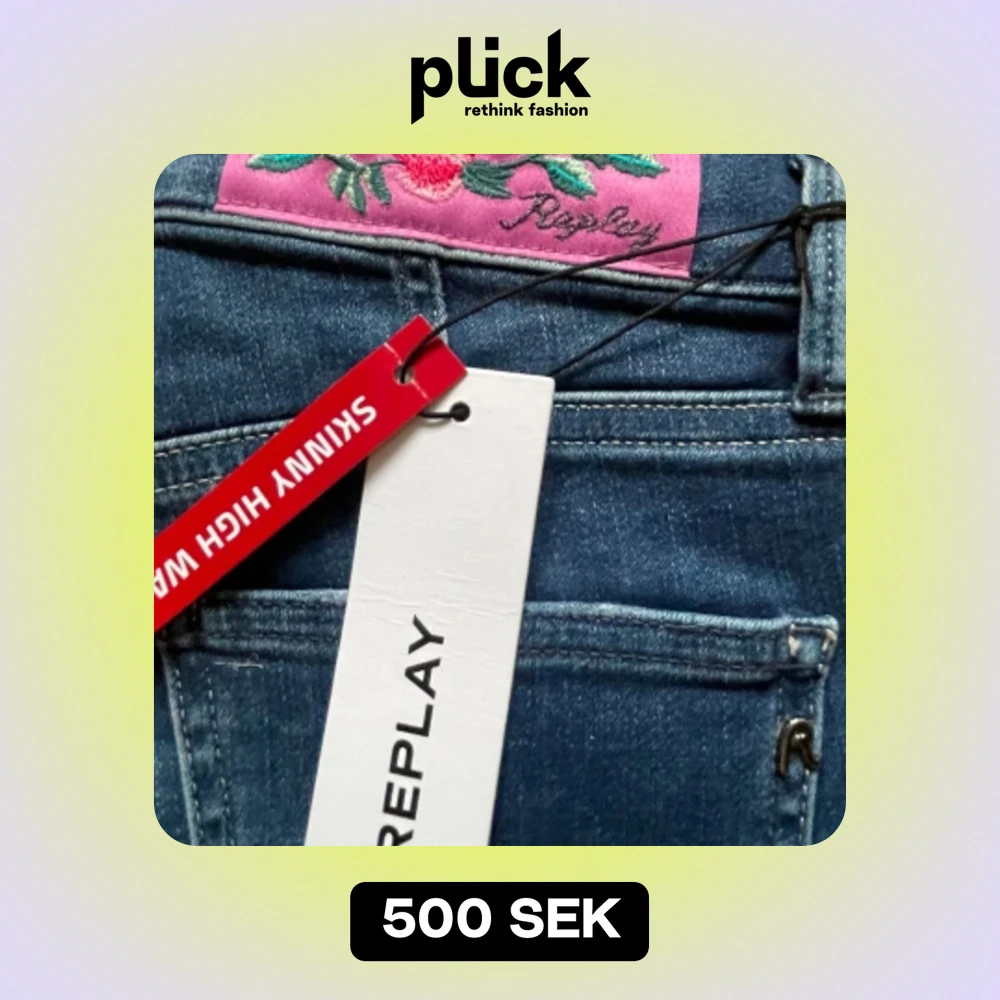 Helt nya Replay Jeans skinny High Waist. Söta med rosa inslag Till barn/ ungdom Stl 14 A. H 158 cm. OBS. Ny pris 990 kr Alla lappar kvar!