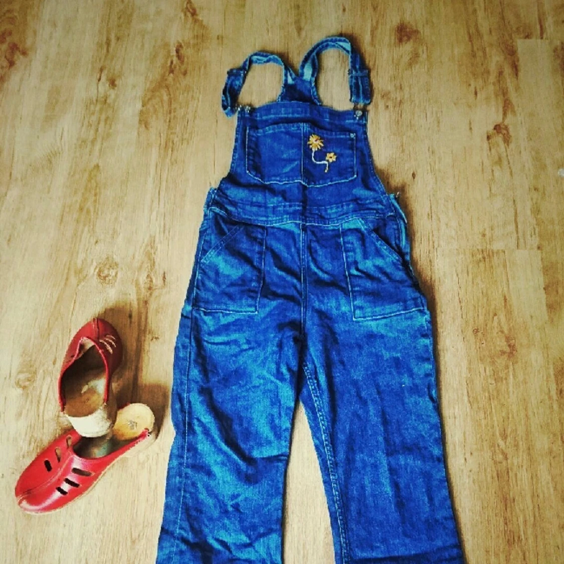 Hängselbyxor från Hm med utsvängda ben och med lite egengjord brodyr på framsidan 🏵