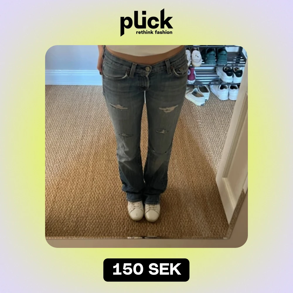 Säljer dessa super fina jeans, de har två små hål på rumpan men det går nog att fixa💞