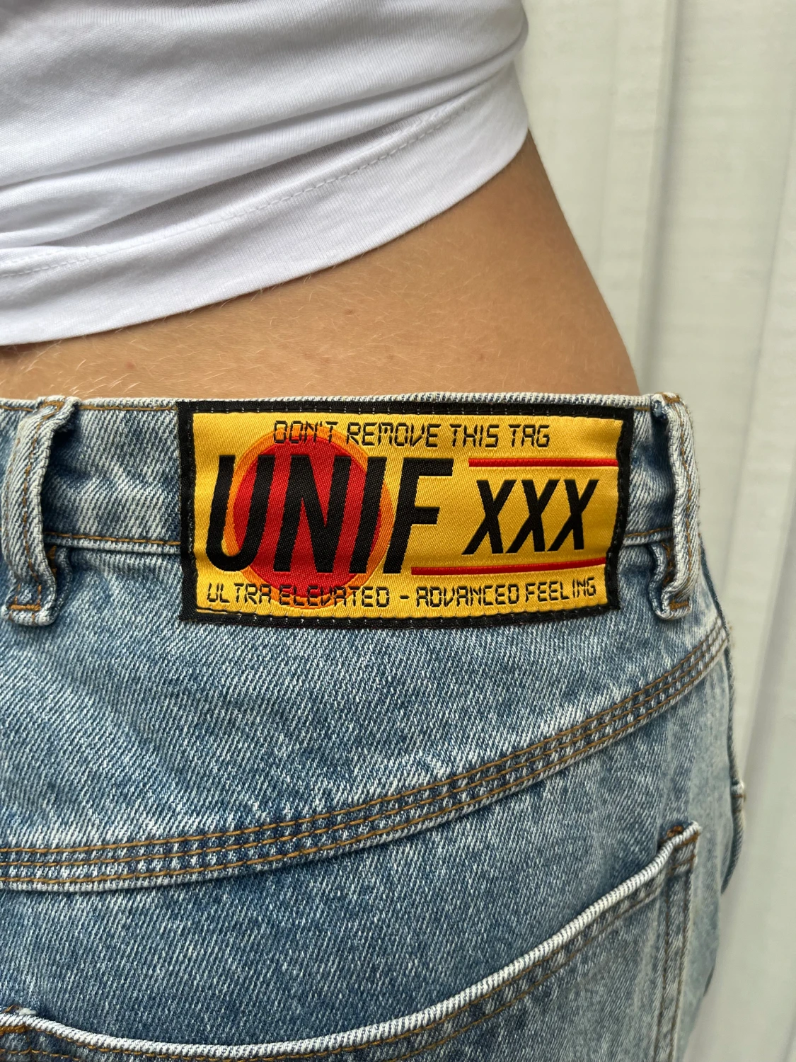 baggy UNIF lågmidjade jeans, aldrig använda. modellen är UNIF xjean Mått: midja - 72cm innerbenslängd - 83cm