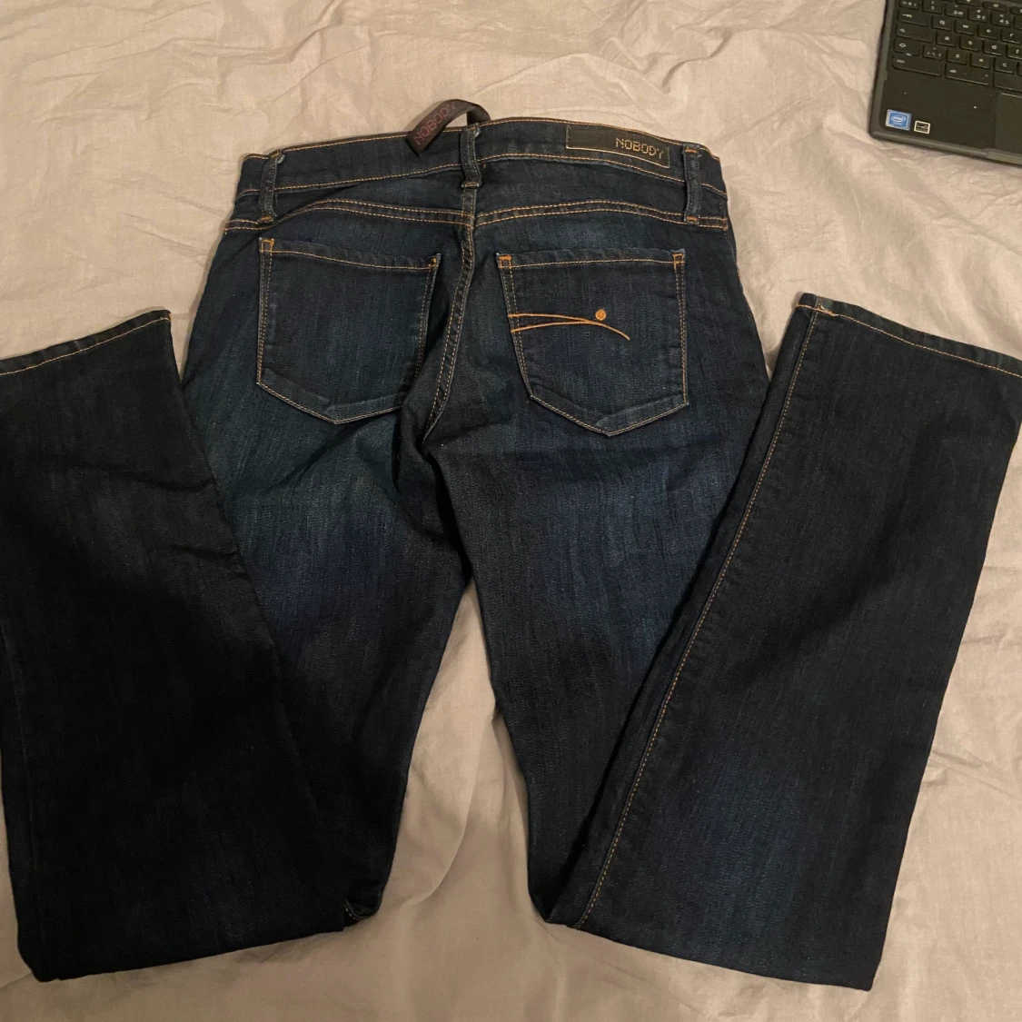 Lågmidjade jeans från Sellpy köpta för 500 kr, det är i en flare-modell med superfina detaljer där bak, säljer då det tyvärr är för små❤️